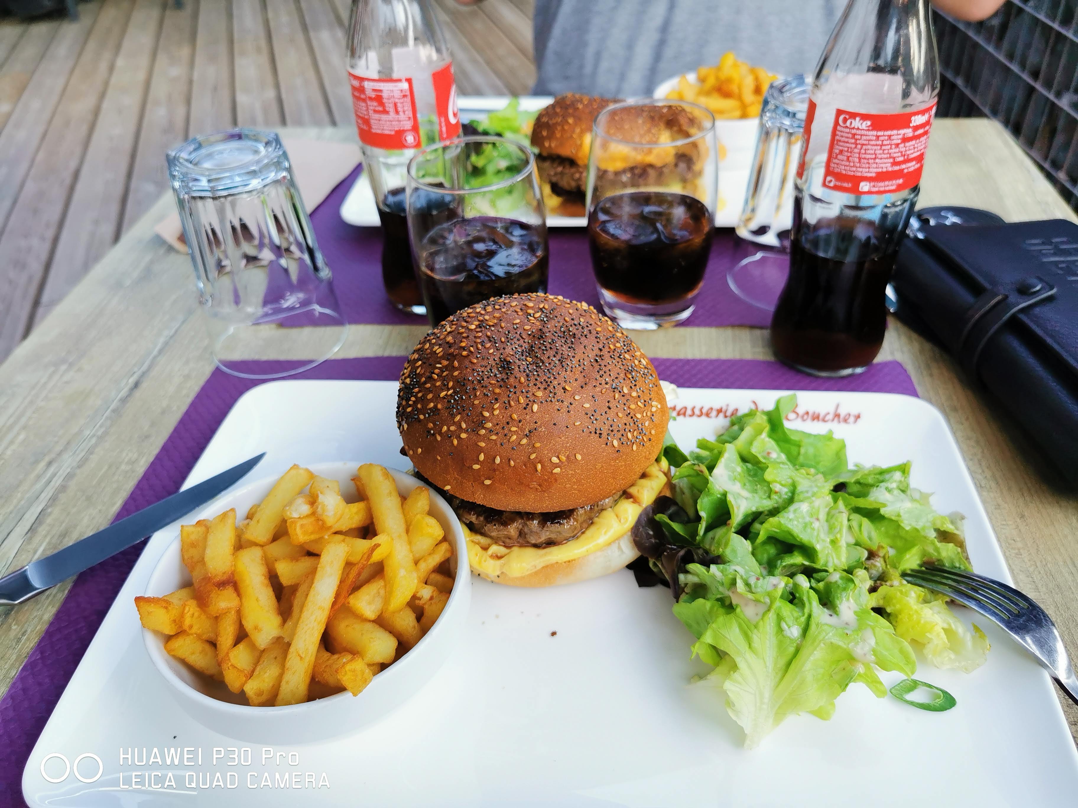 Petit arrêt sur le pouce avant de reprendre la route. Repas très bien. Hamburger au foie gras poêlé, j'ai pas été volée. Excellent et très bien servi.