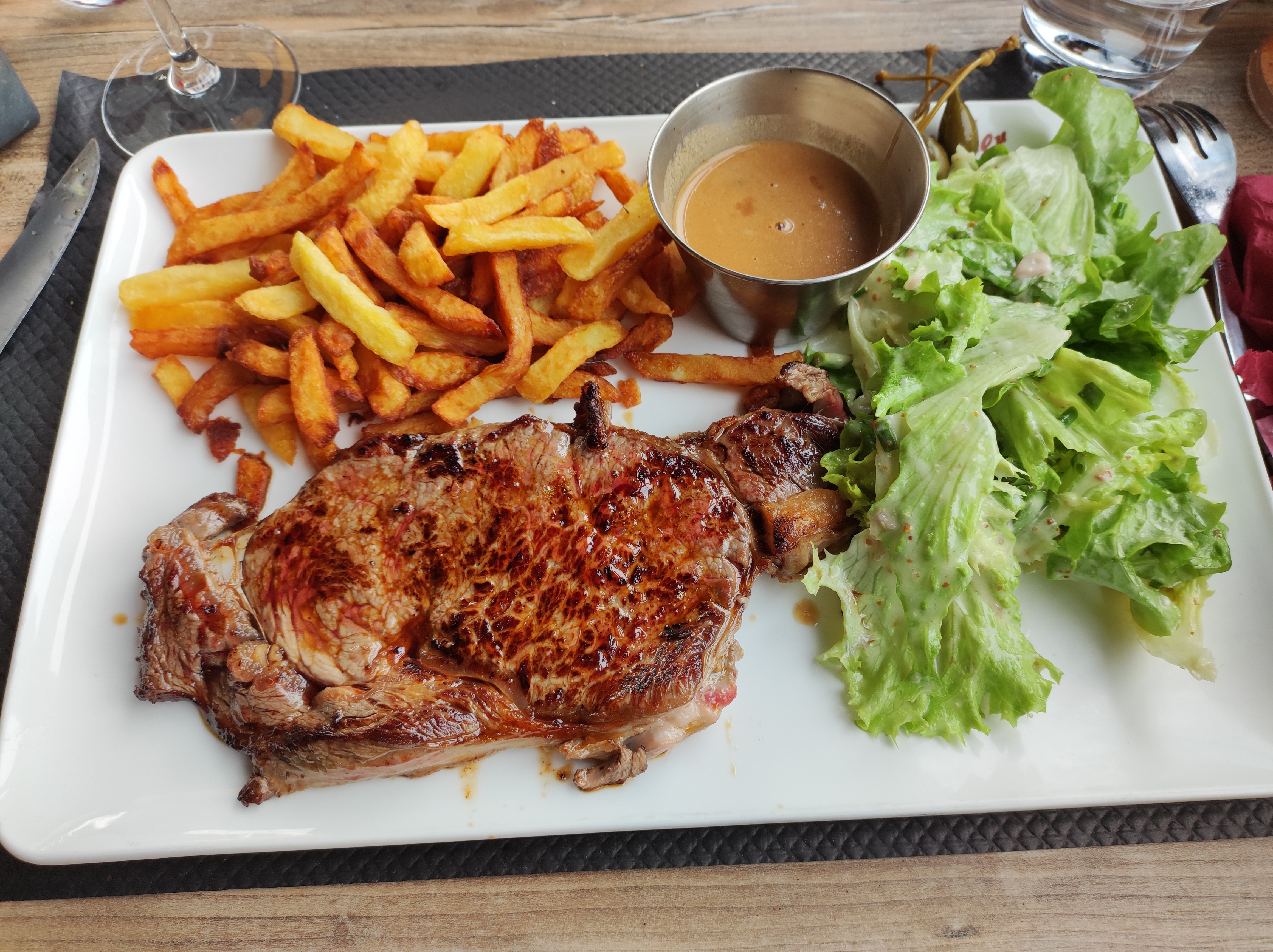 Tres bonne viande' les frites sont excellentes..... la quantité est à revoir...!! et la salade absente....!!