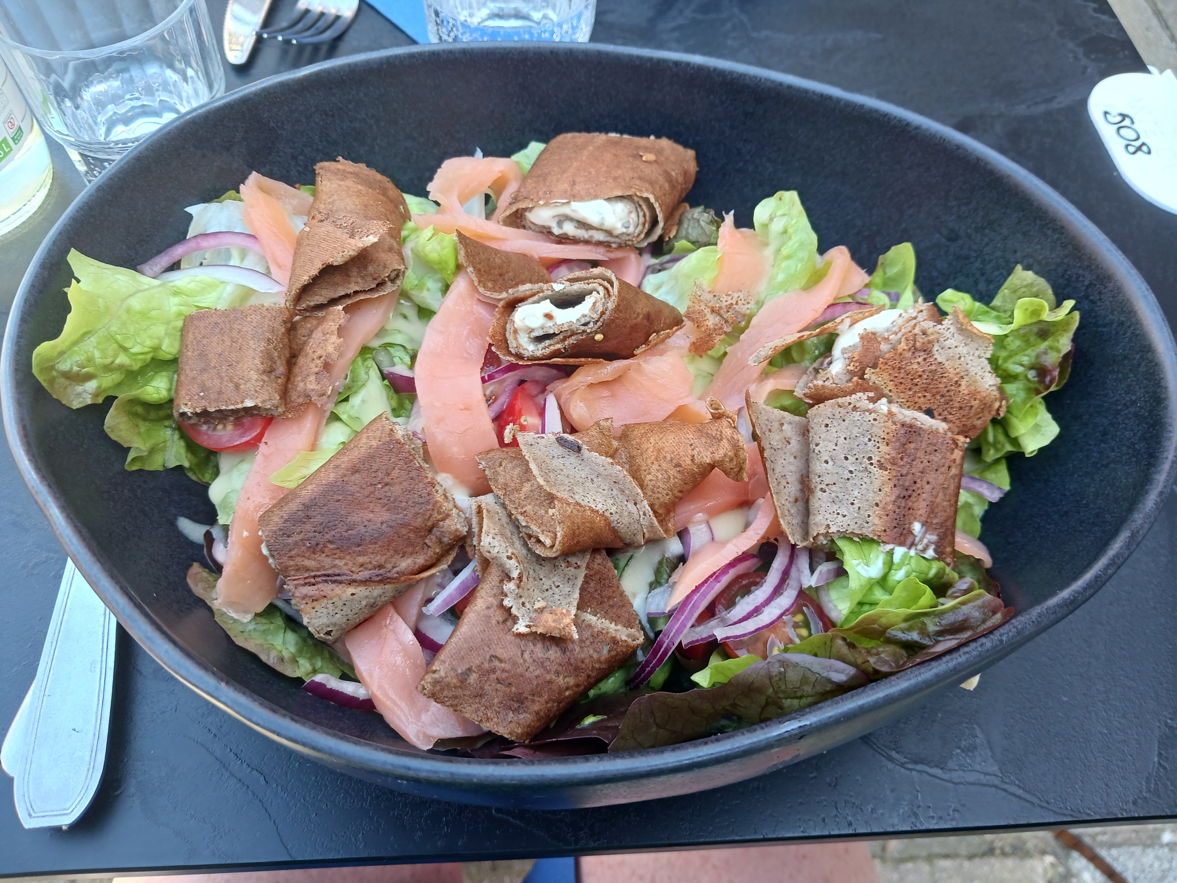 Un des seuls restaurants de Guérande intra-muros ouvert après 14h. Agréable terrasse, j'ai goûté pour la 1e fois du roulé de galette en salade aux produits frais.