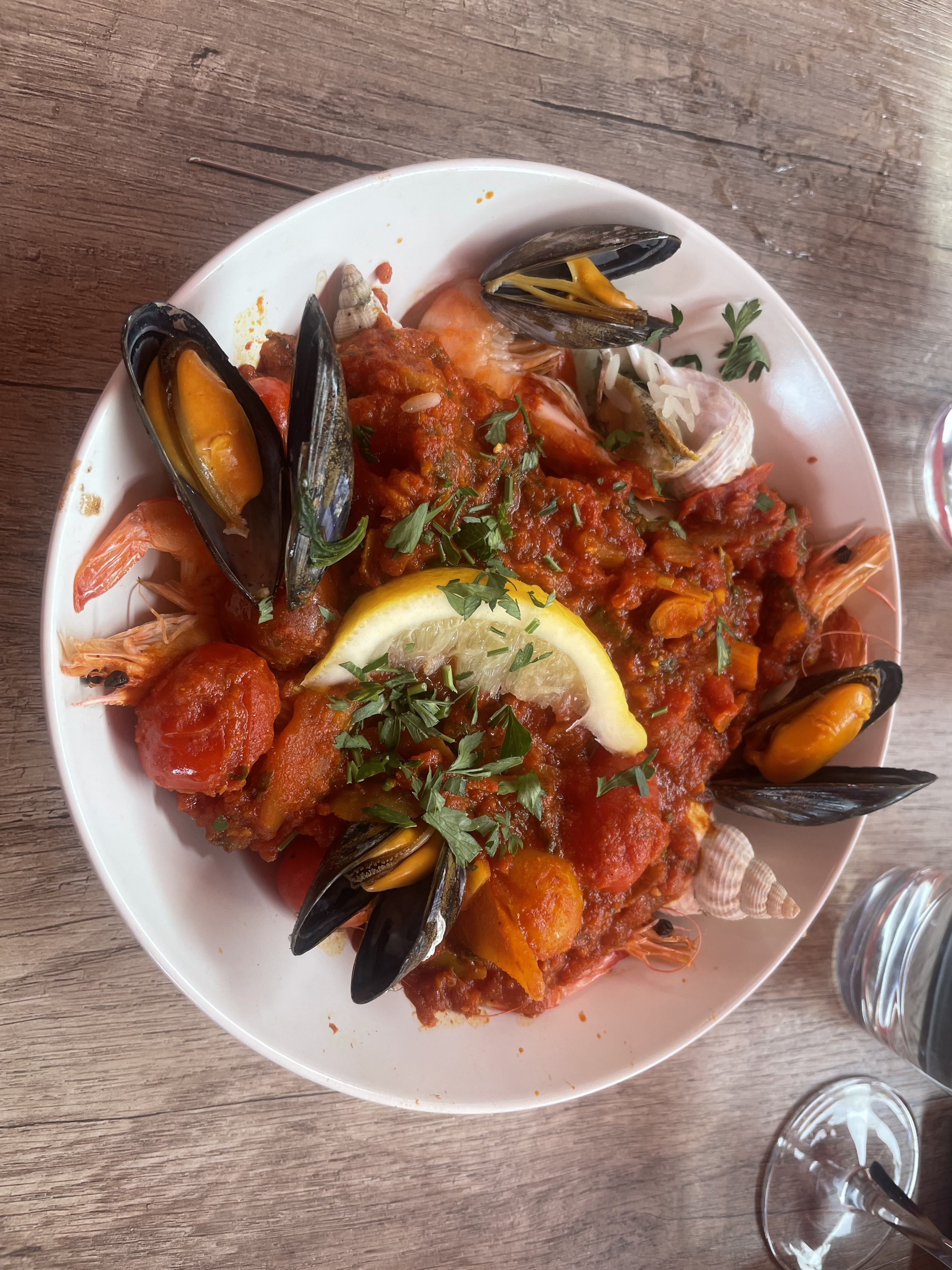 Accueil très sympa , belle terrasse Les différents plats pris moules / jarret/rougail de la mer étaient excellents Je vous recommande