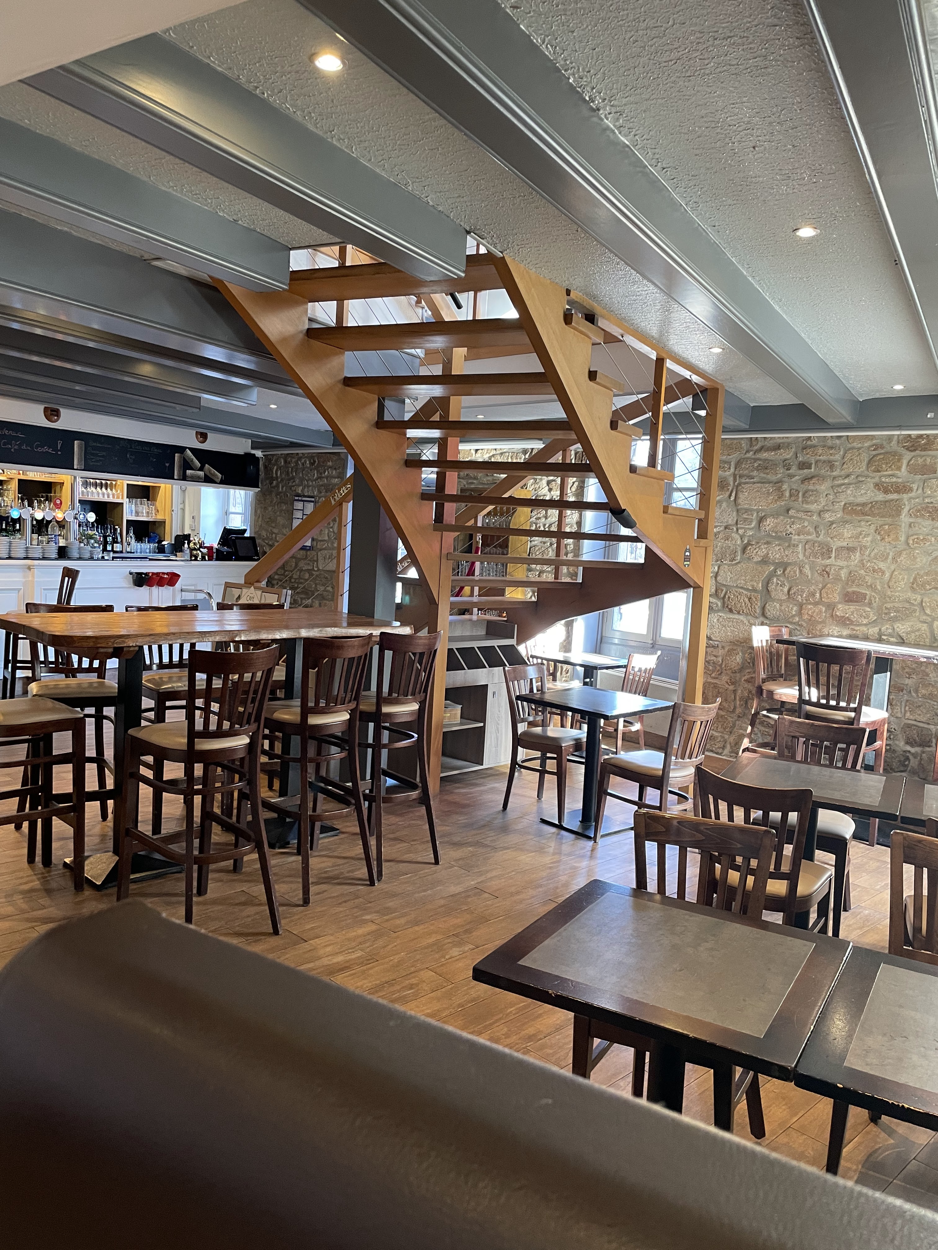 Serveur très sympathique, barmaid également. Il propose des bières bretonnes '' Coreff'' bien bonnes ! La salle à l'étage est spacieuse et nous ne sommes pas les uns sur les autres. Nous y avons bien mangé .
