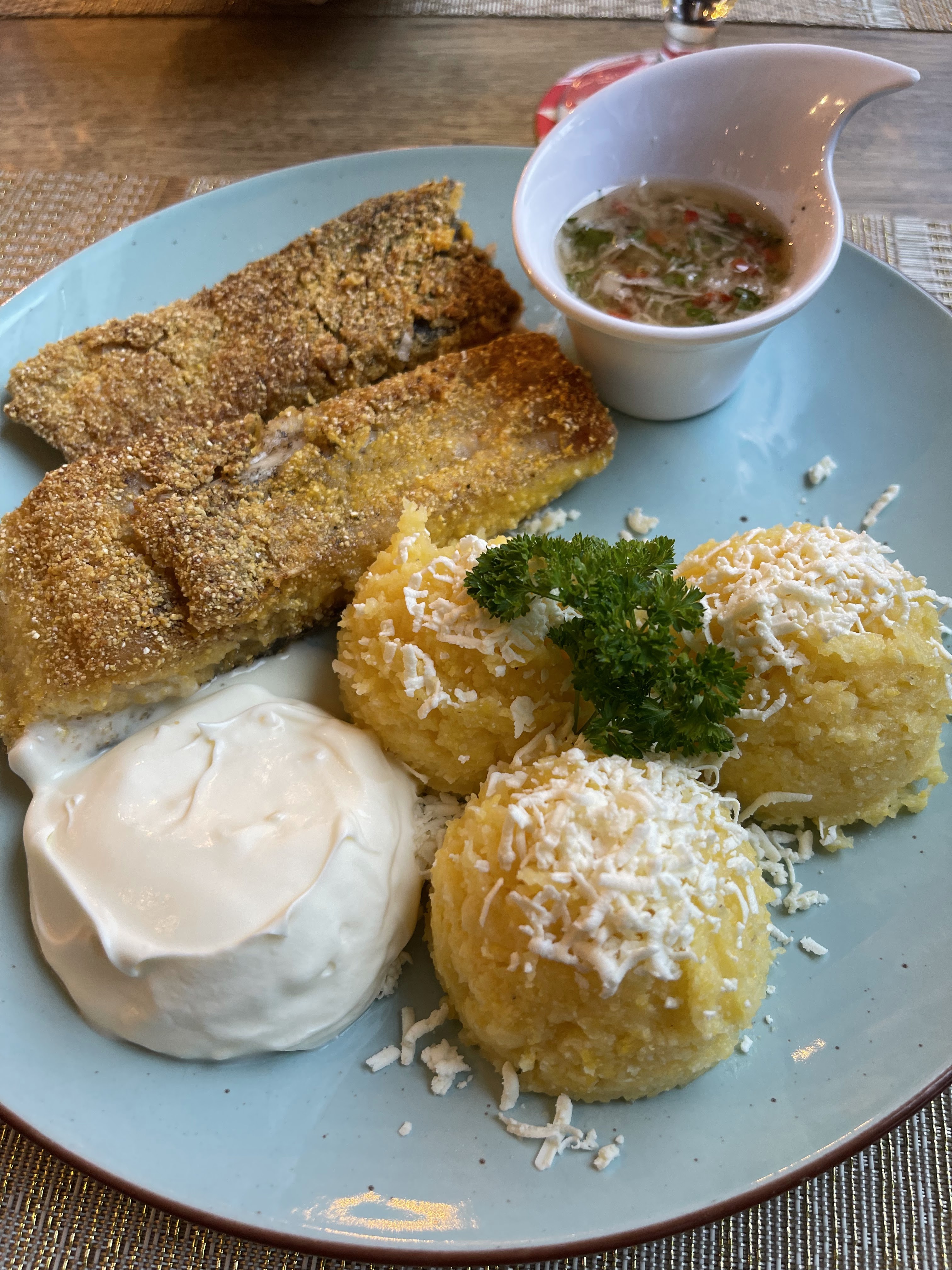 Lieu propre, bon accueil , des parkings disponibles et une bonne cuisine, correct niveau goût pour les plats traditionnels (soupes Moldaves ), nous viendrons pour essayer d’autres plats . Seulement une remarque , Friptura pensée a servir de deux façons sans la sauce tomate au avec , au nord ont mangé pas comme ça (la recette originale et sans sauce tomates)et ont plus il ya beaucoup des gens qui supporte pas bien la tomate pour digéré mais peut être il’s fallait dire au demande les composants du plat, pour le reste tout tout est bonne , nous reviendrons :)