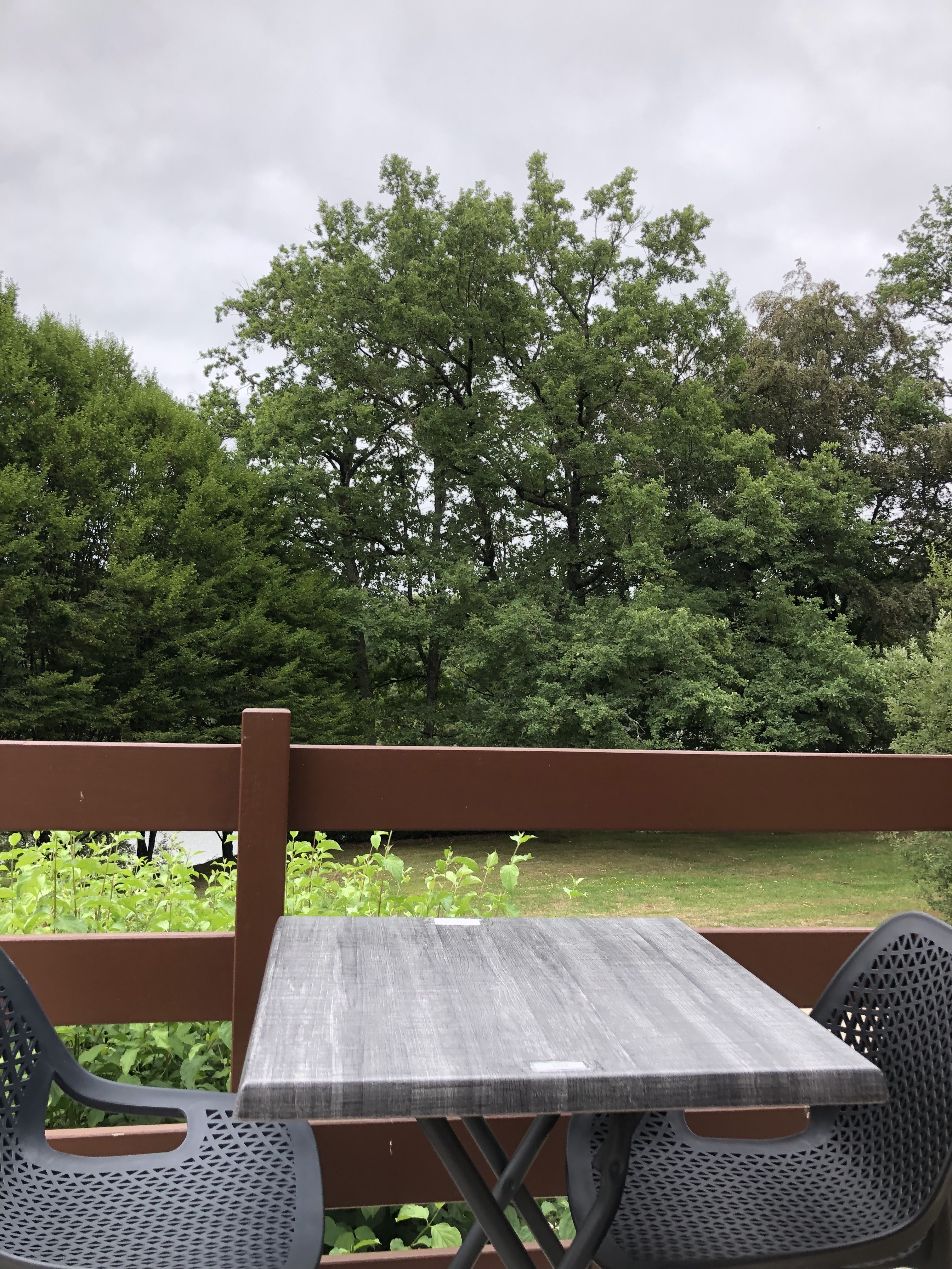 Sur la route des vacances, nous avons dîné et dégusté d’excellentes et copieuses pizzas (peut-être les meilleures que nous ayons mangé depuis longtemps et on n’a pu finir mais on est reparti avec dans un carton) dans un cadre nature et un patron très accueillant (un peu moins la jeune serveuse à qui il arrive de lever les yeux au ciel face aux demandes des clients!)