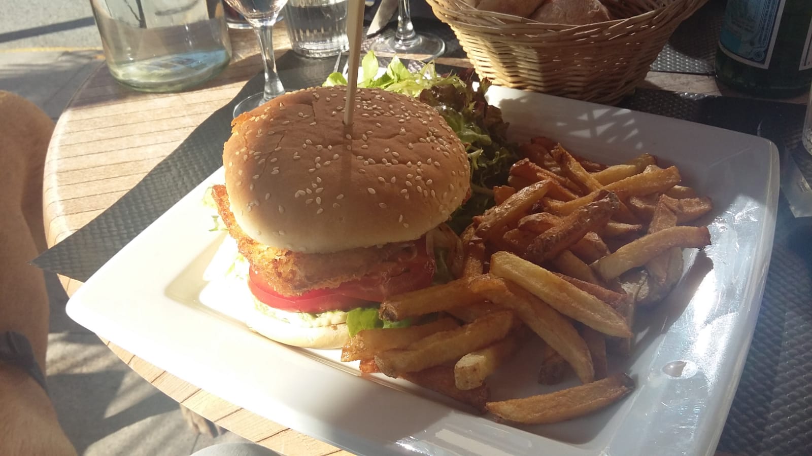 Si vous faites une excursion au Lac de Saint Cassien et que vous cherchez un endroit sympa pour déjeuner, cela vaut la peine de continuer jusqu'au petit village de Montauroux (il se trouve à un peu moins de 10 minutes de la grande jetée). * La brasserie y est située sur la place du village. La rue passe entre le restaurant et la terrasse. Vous pouvez vous garer directement sur le site jusqu'à 15h, avec notamment une belle vue sur la vallée ! * La carte est relativement fournie, il y a aussi des pizzas et les plats du jour sont affichés sur un tableau. Les prix sont tout à fait raisonnables, le demi-litre de rosé ouvert 7,50 €, l'espresso 1,40 €. Escargots 11,00 €. Fish burger avec frites et salade 15 € et tartare 14 €. * Les plats étaient toujours savoureux, seules les frites n'étaient plus chaudes et un peu molles. Les délais d'attente étaient un peu gênants :-( Il n'y avait que de la glace en dessert (nous ne l'avons pas prise). Nous avons payé au comptoir. * Toilettes très propres, service féminin charmant et joyeux, la collègue par contre était râleur. * Un petit conseil si vous êtes déjà dans le village : à seulement quelques minutes en voiture et il y a un grand espace de loisirs pour la randonnée. *