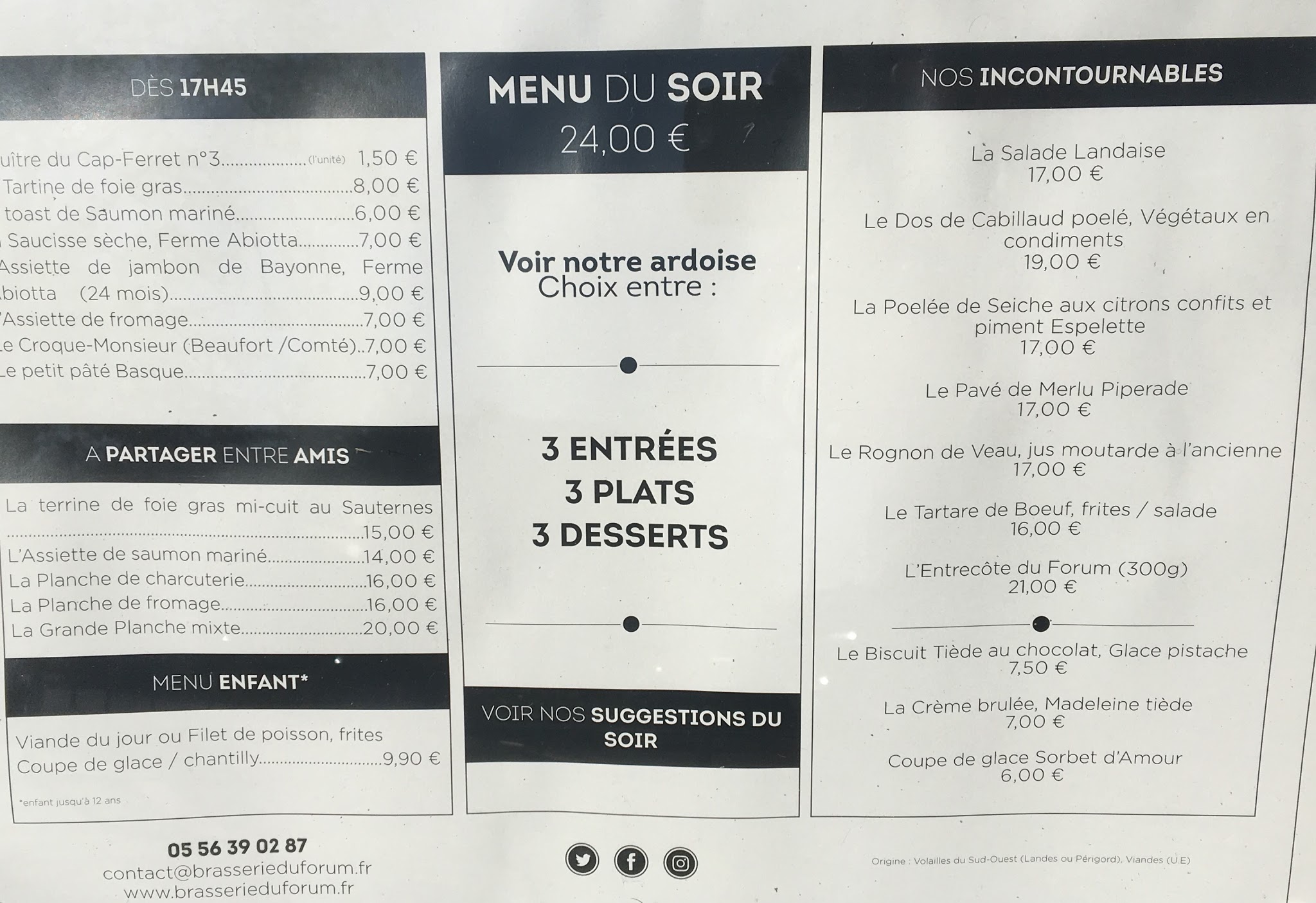 Les produits sont de qualité , le service très sympa cependant les plats sont vraiment cher pour ce qu'ils sont (surtout par rapport aux autres restaurants des alentours !) La brasserie est collée à une boulangerie et on nous sert du pain type surgelé sur plaque avec notre salade landaise... Dommage... La mousse au chocolat en dessert n'étais pas prise... Re dommage . Bref nous ne reviendrons pas ou à la rigueur pour prendre un verre... Et encore...