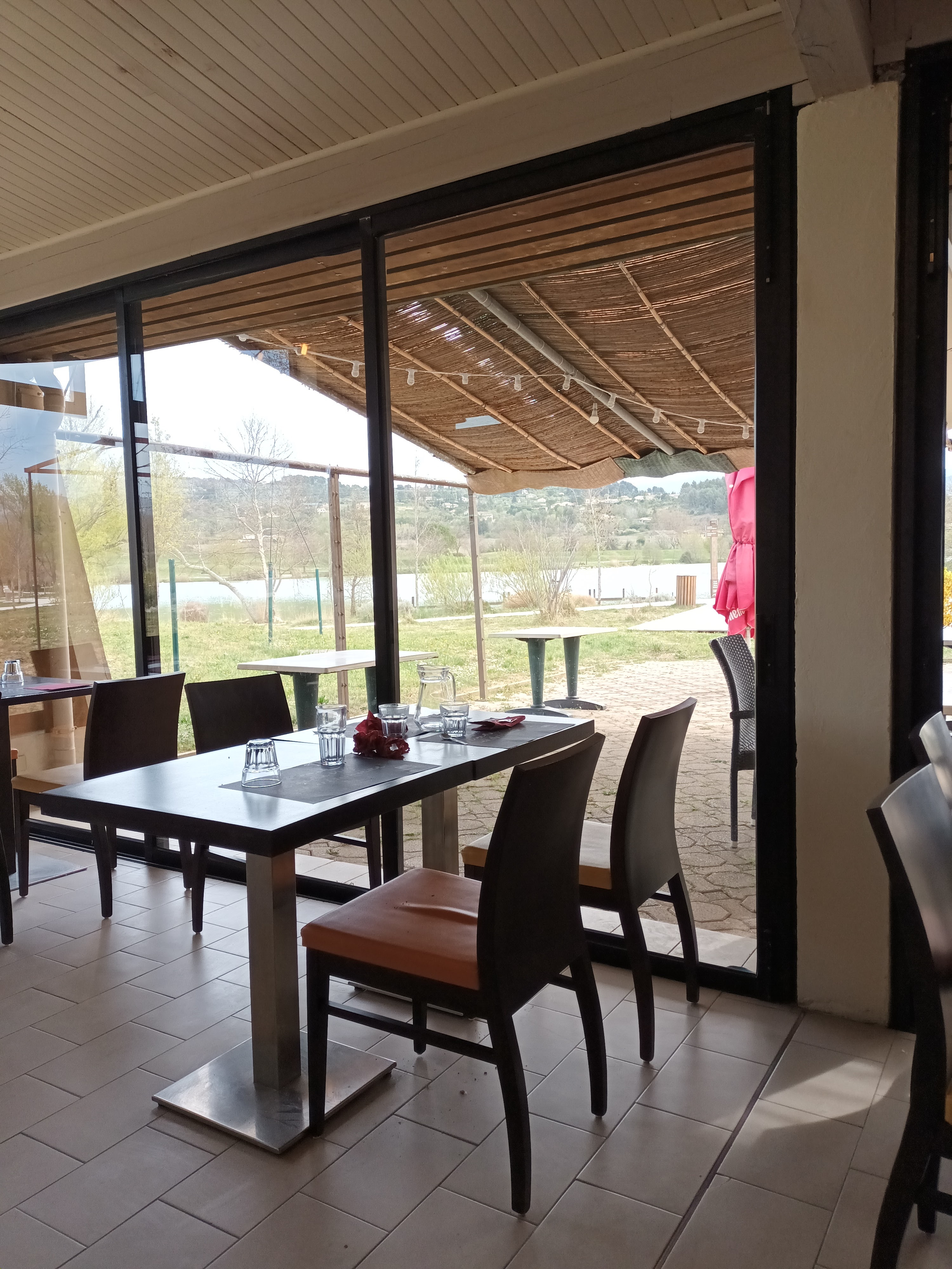 Nous nous sommes arrêtés par hasard un dimanche lors d'un WE dans le Lubéron et nous avons été agréablement surpris de trouver un restaurant à la cuisine simple mais préparée avec soin visiblement à partir de produits de bonne qualité avec une petite touche personnelle qui fait toute la différence et ceci donc pour un rapport qualité/prix satisfaisant. Cet endroit est sympathique puisqu'il possède une grande terrasse sur le plan d'eau, le décor correspond à une brasserie classique pour un lieu de loisirs, nous laissant penser que nous serions plus dans une formule de snack, donc bonne surprise. Une petite attention à la charmante et dynamique maîtresse d'hôtel qui nous a servis en faisant preuve d'efficacité et de professionnalisme. Merci à toute l'équipe !