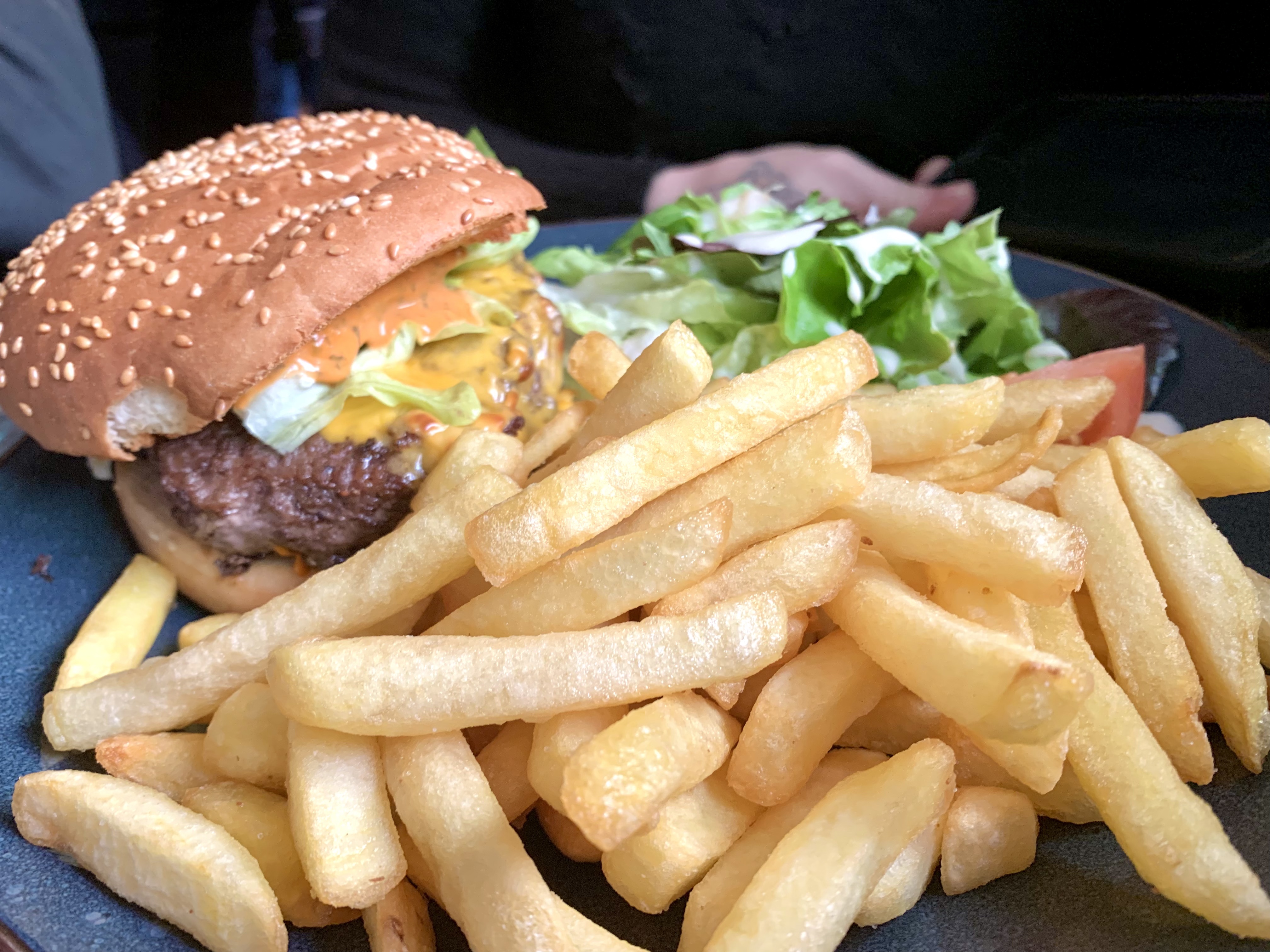 Le burger était bon avec un steak juteux, mais le pain était un peu trop sec et épais. Pour le prix de 18€ (avec frites) c'est un peu trop cher je dois dire..