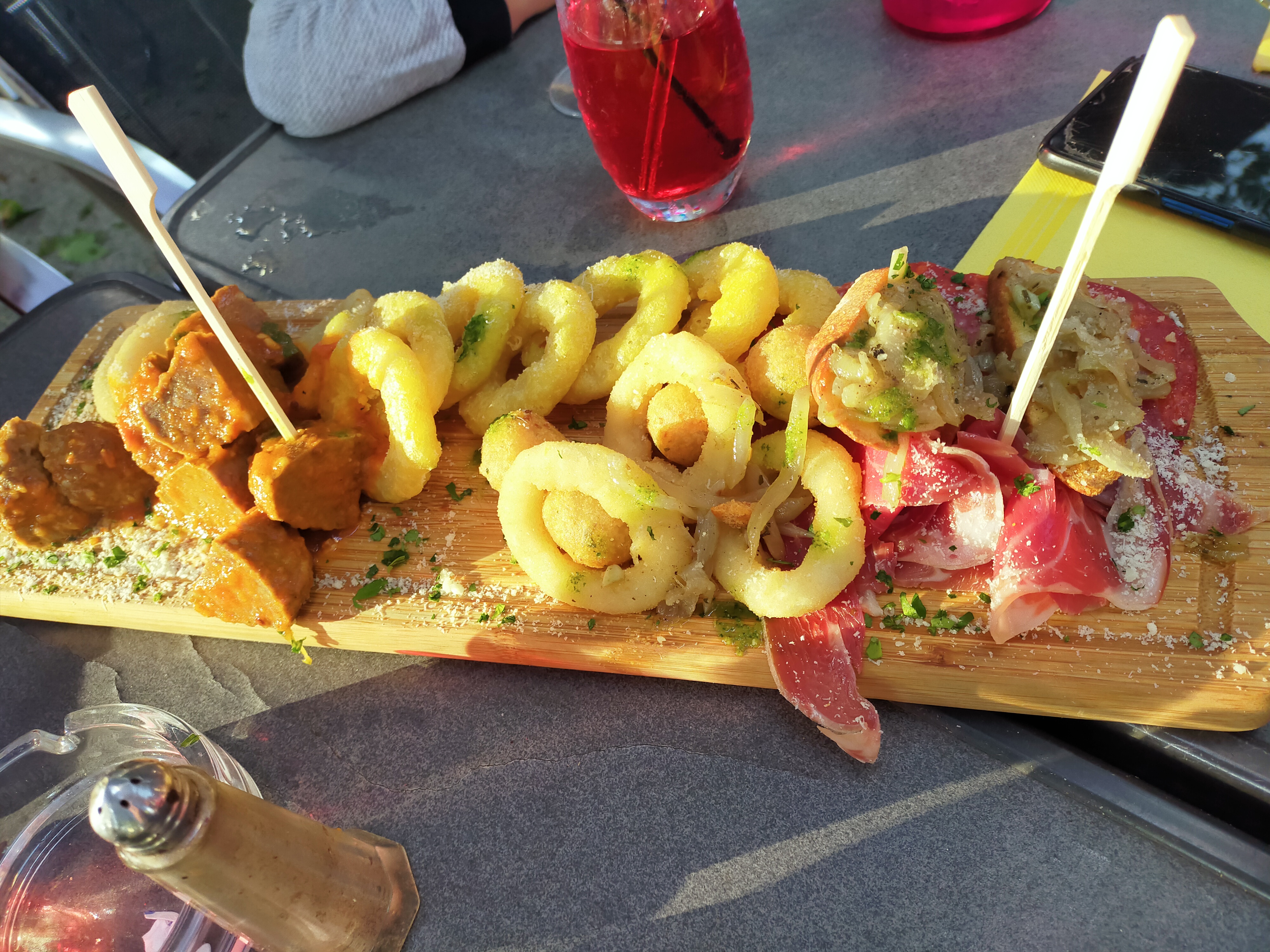 Patron super sympa. une petite terrasse ombragée pas loin du centre. (PS)Merci pour la bouteille d'eau...
