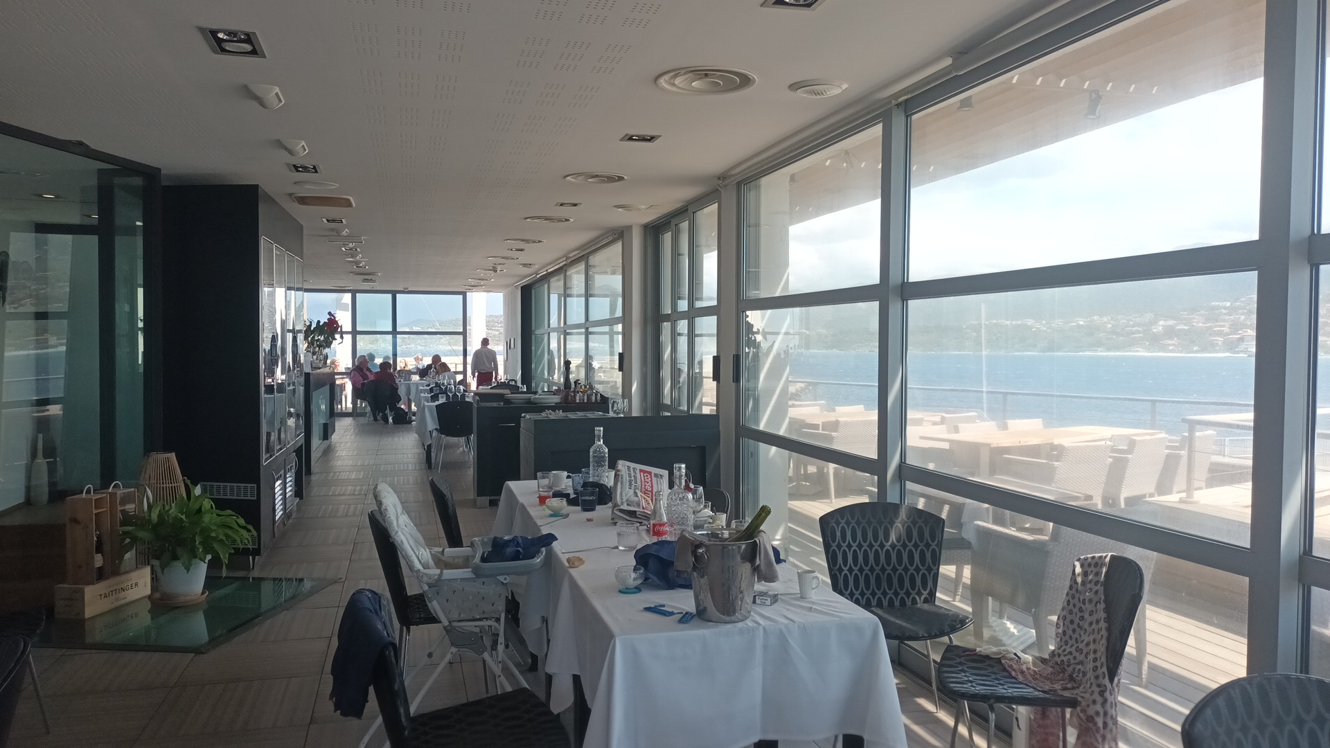 Accueil parfait. Premier restaurant du séjour qui est pro. On nous apporte un amuse gueule pour l apéritif, l eau, le pain. Les plats sont très très copieux et bons. Étant du métier je conseille.. Vue panoramique sur la mer. Au top