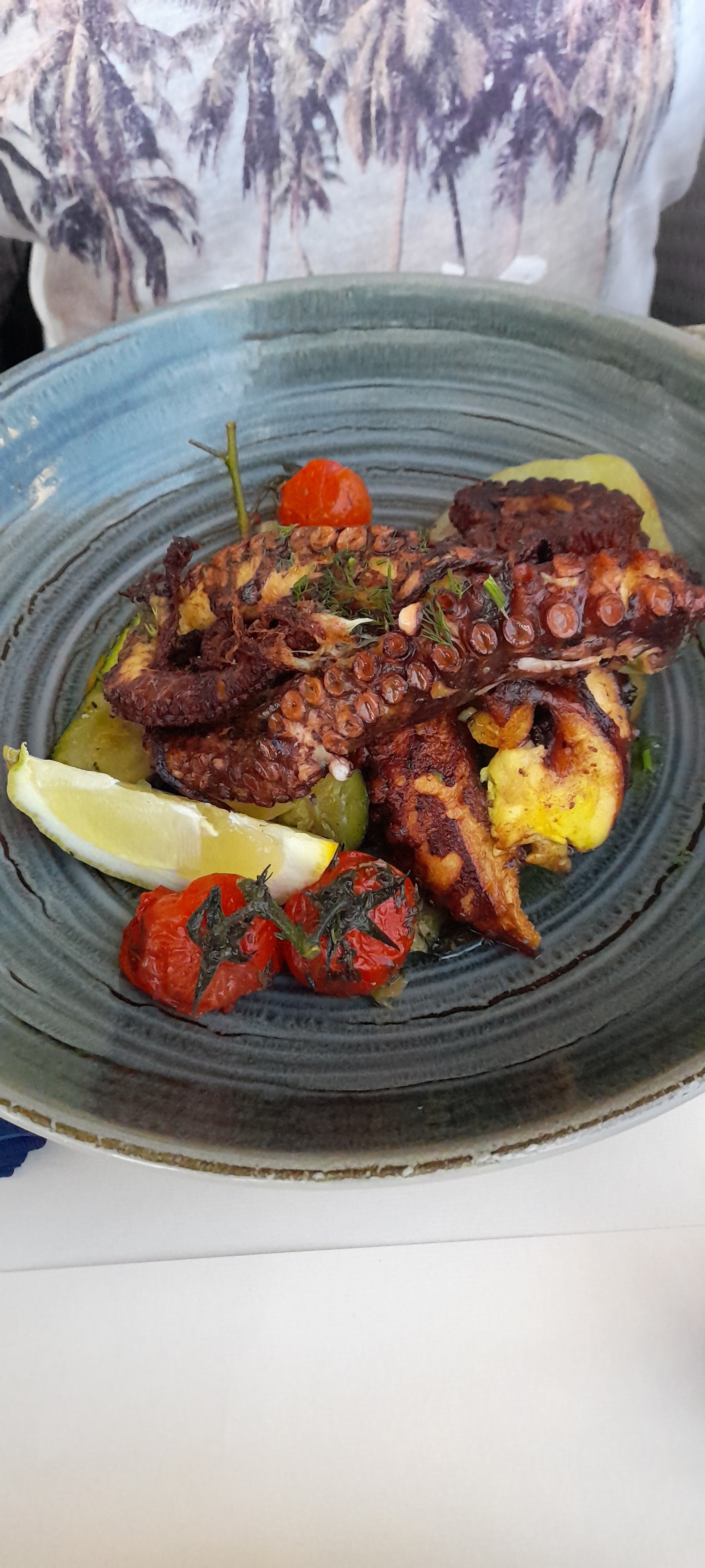 Accueil chaleureux, nous étions une grande table face à la mer. La vue de nuit était agréable. La carte est composée de beaucoup de poisson et d'un peu de viande mais aussi pâtes et pizza. Le menu était délicieux mais peu copieux et un peu cher. Le personnel est très accueillant, nous avons reçu de délicieux digestif offerts.
