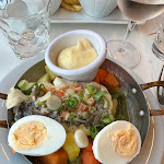 Très bon déjeuner dans un cadre agréable avec une vue appréciable sur le château de St Germain (lieu où a été inventé la sauce béarnaise, qui est d'ailleurs très bonne dans cette brasserie). Une belle bavette d'Angus saignante (quoique pas vraiment), des pommes de terres délicatement aillées, le tout accompagné d'un Sancerre rouge aux notes de fruits rouges, un délice ! Enfin, un Paris Brest au praliné qui vient en toute légèreté terminer le repas.