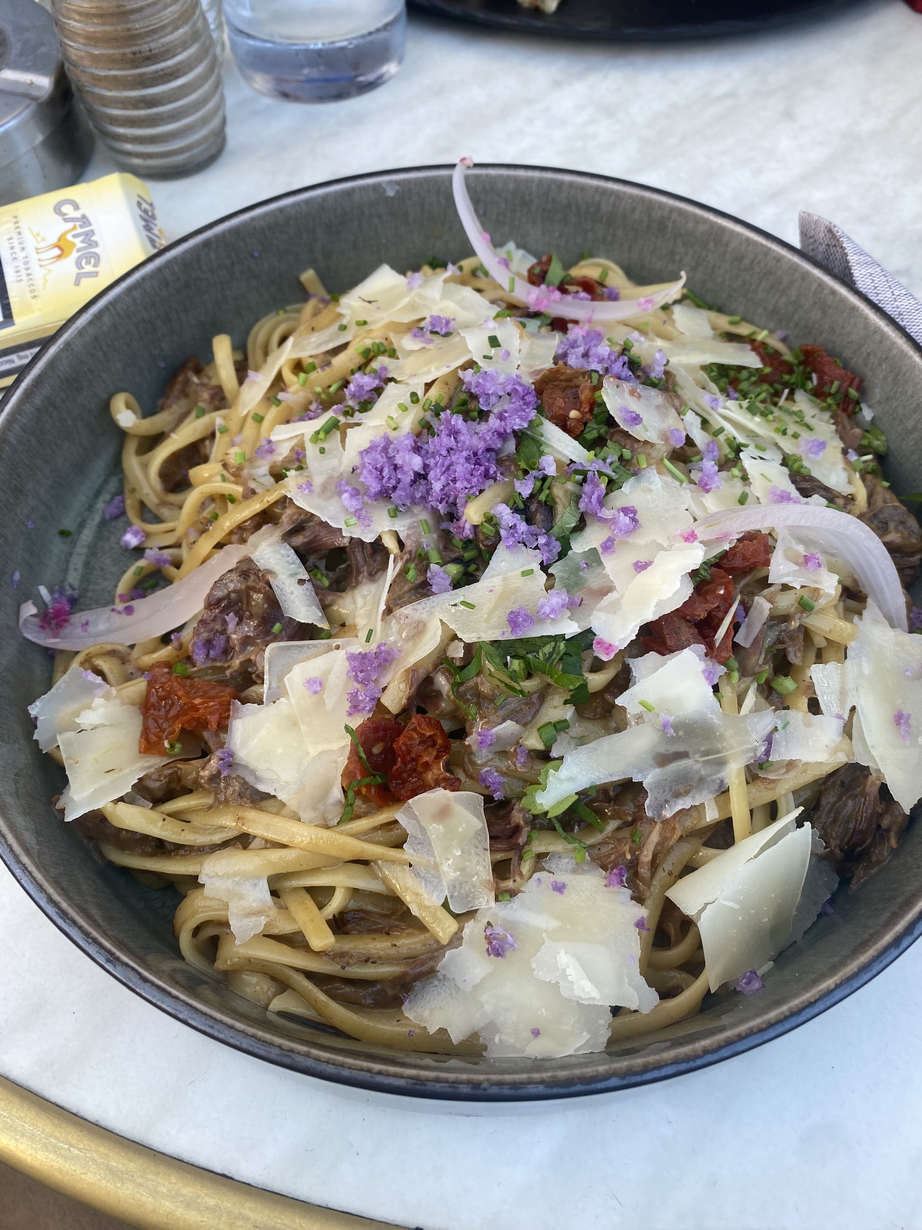 Petit restaurant sympa tenu par des jeunes restaurateurs. Le repas choisi buschetta de légumes en entrée et le paleron de bœuf braisé avec son écrasé de pomme de terre: juste délicieux