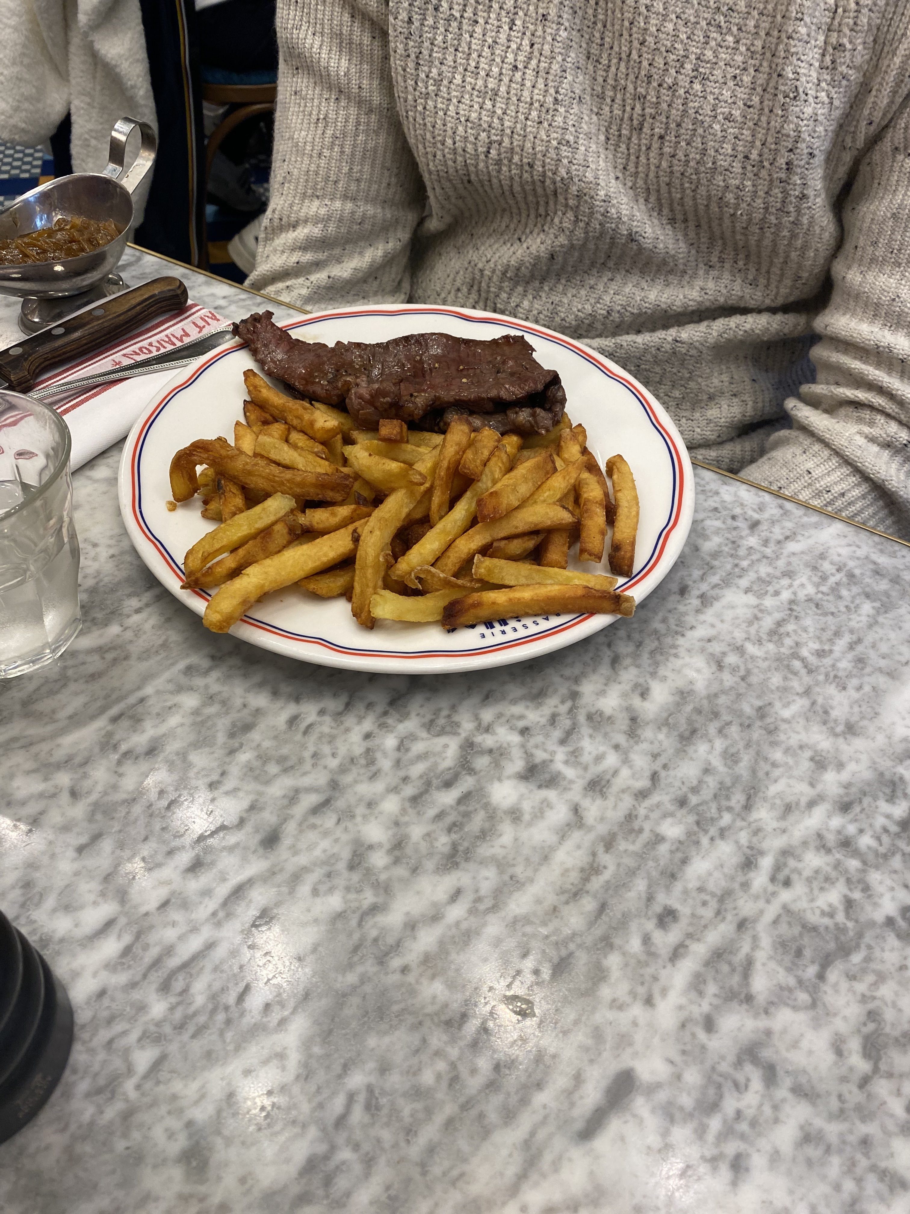 Très bon accueil, des serveurs dynamiques et souriants. Les frites étaient croustillantes, mais contrairement à mon amie qui avait pris la même chose, mon morceau de viande n'était pas tendre. J'ai donc laissé une bonne partie. Les desserts étaient très bons, sucre justement dosé. Merci pour l'eau pétillante, belle surprise.