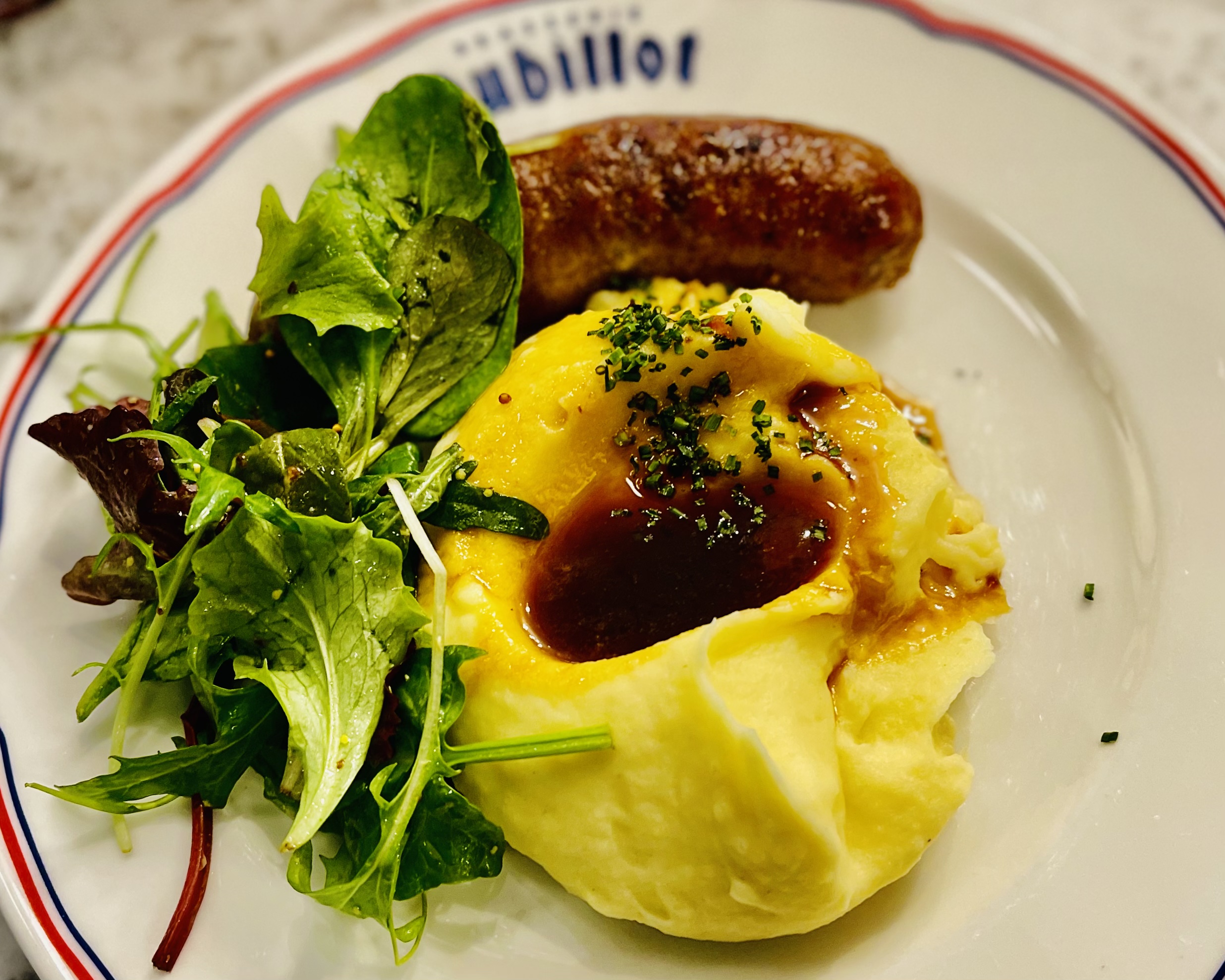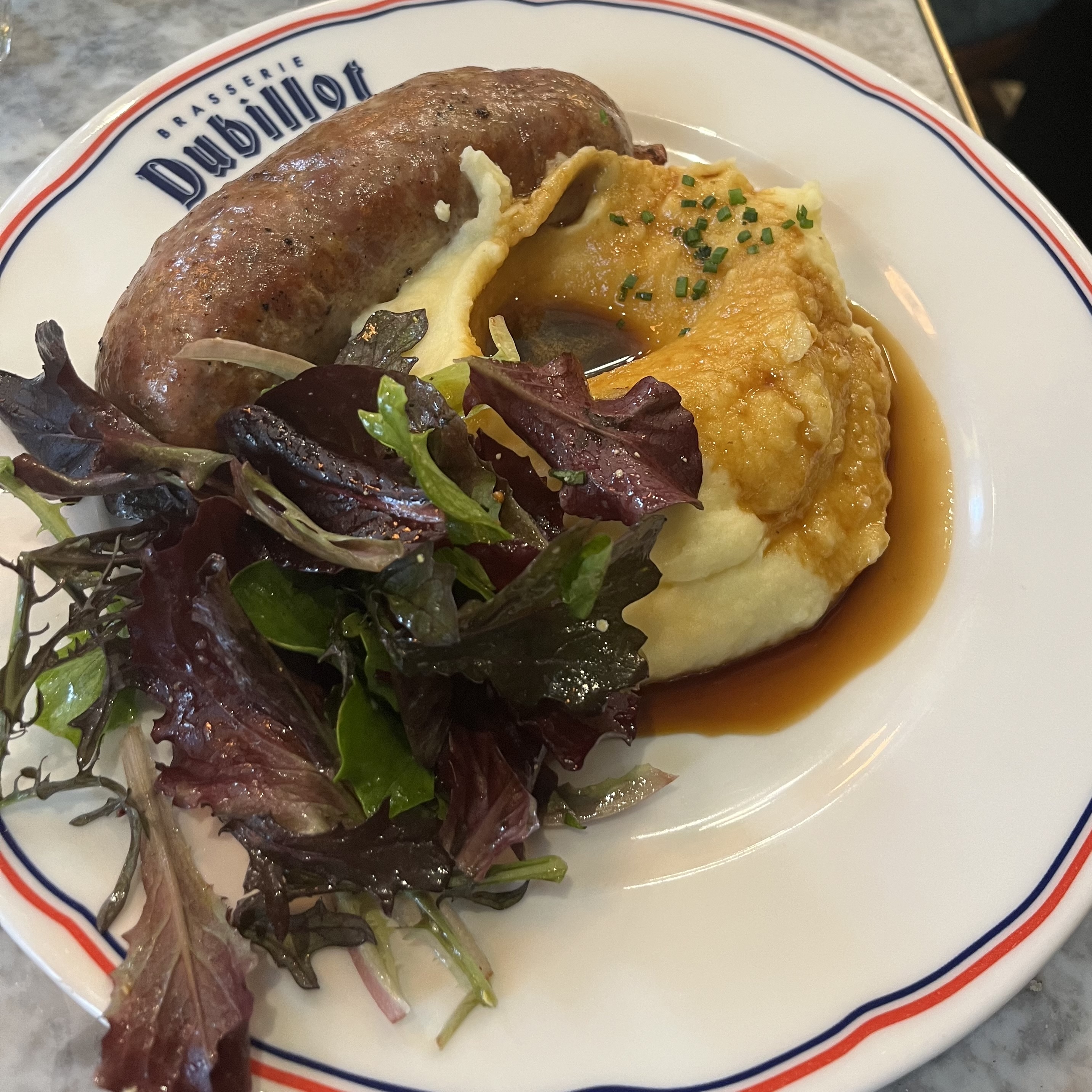 On me parle depuis longtemps du saucisse purée de chez Dubillot ! J ai testé . J ai adoré Le 1er étage est plus calme Déco sympa Tout est délicieux . Et les prix sont serrés ! Bravo