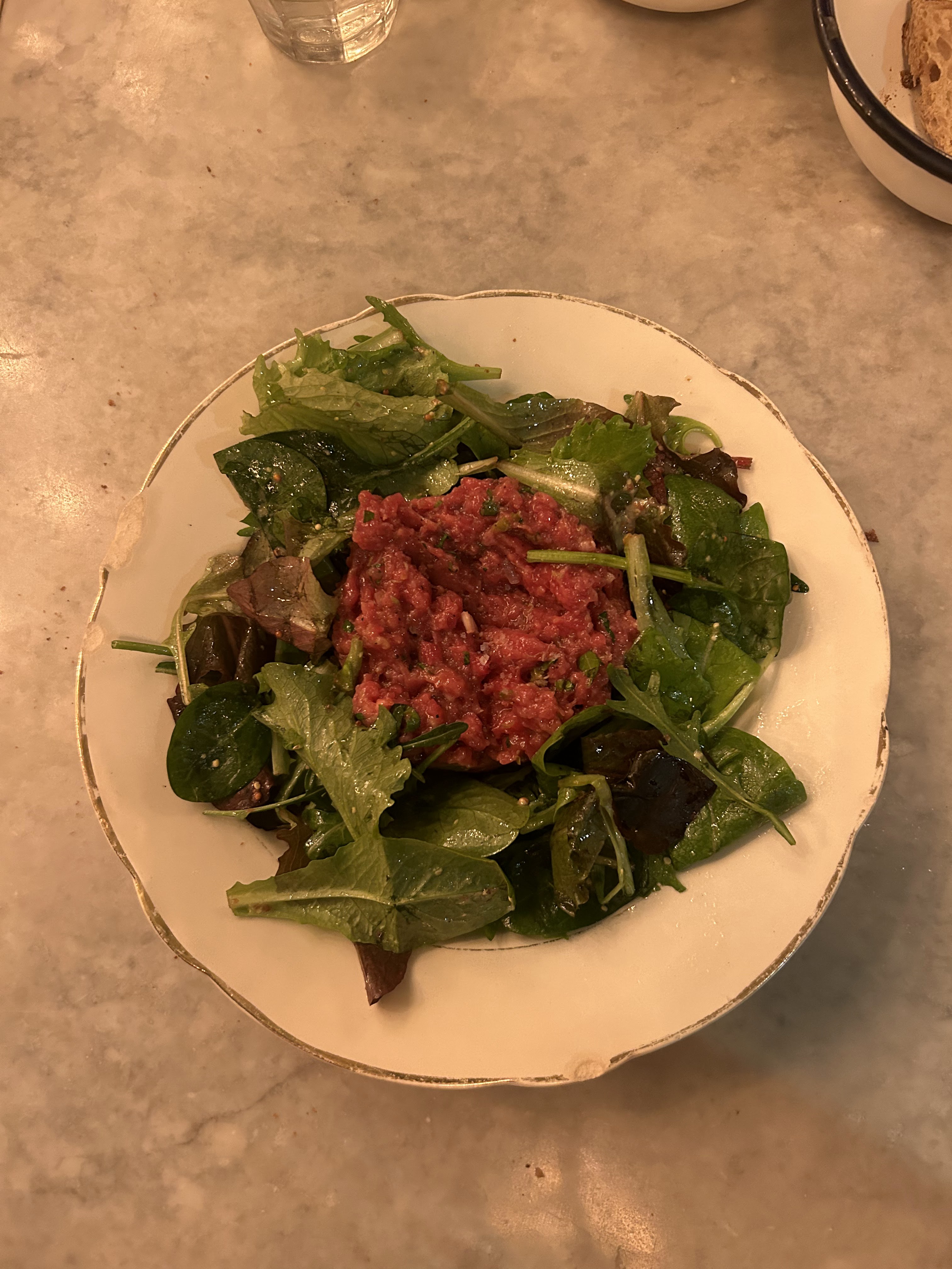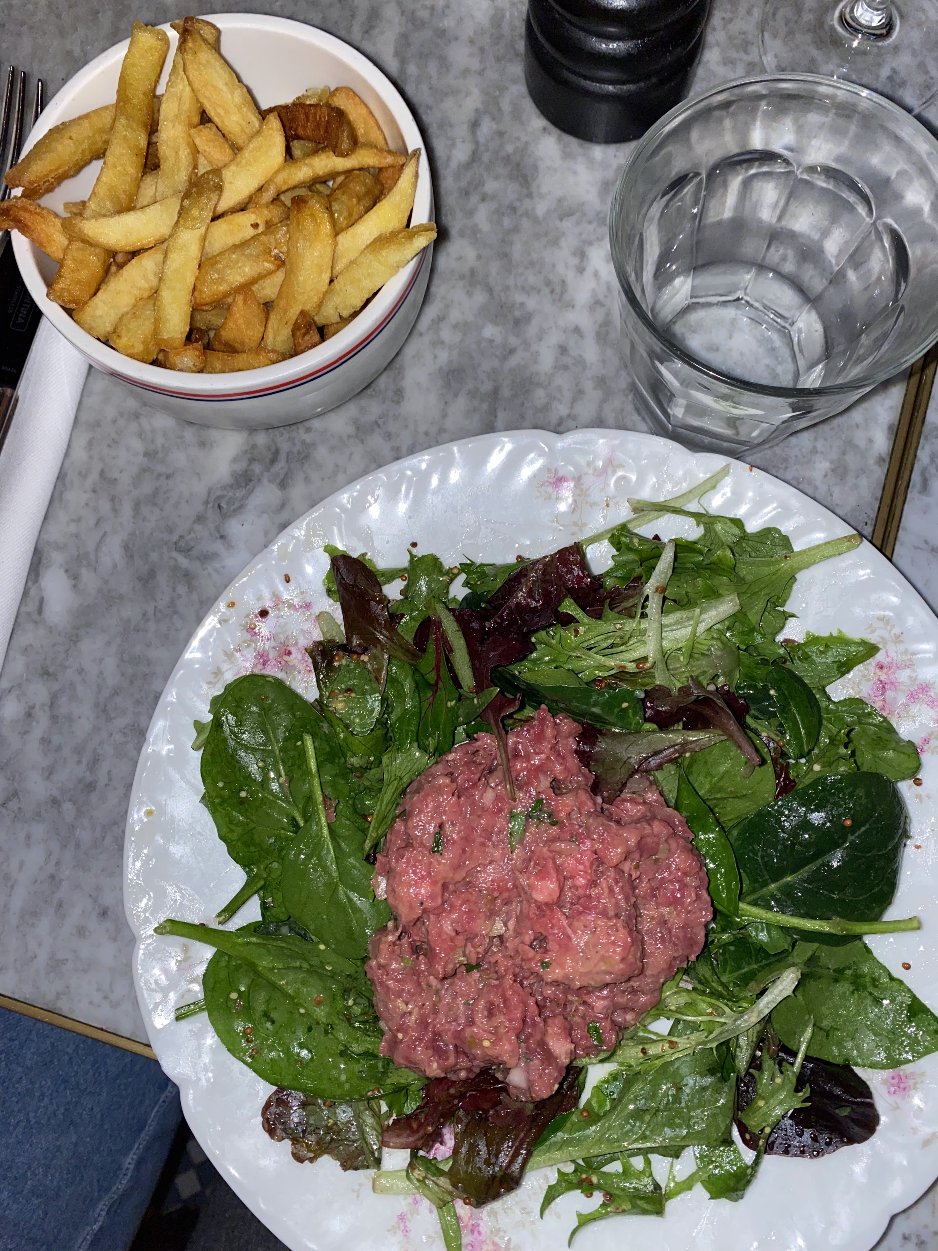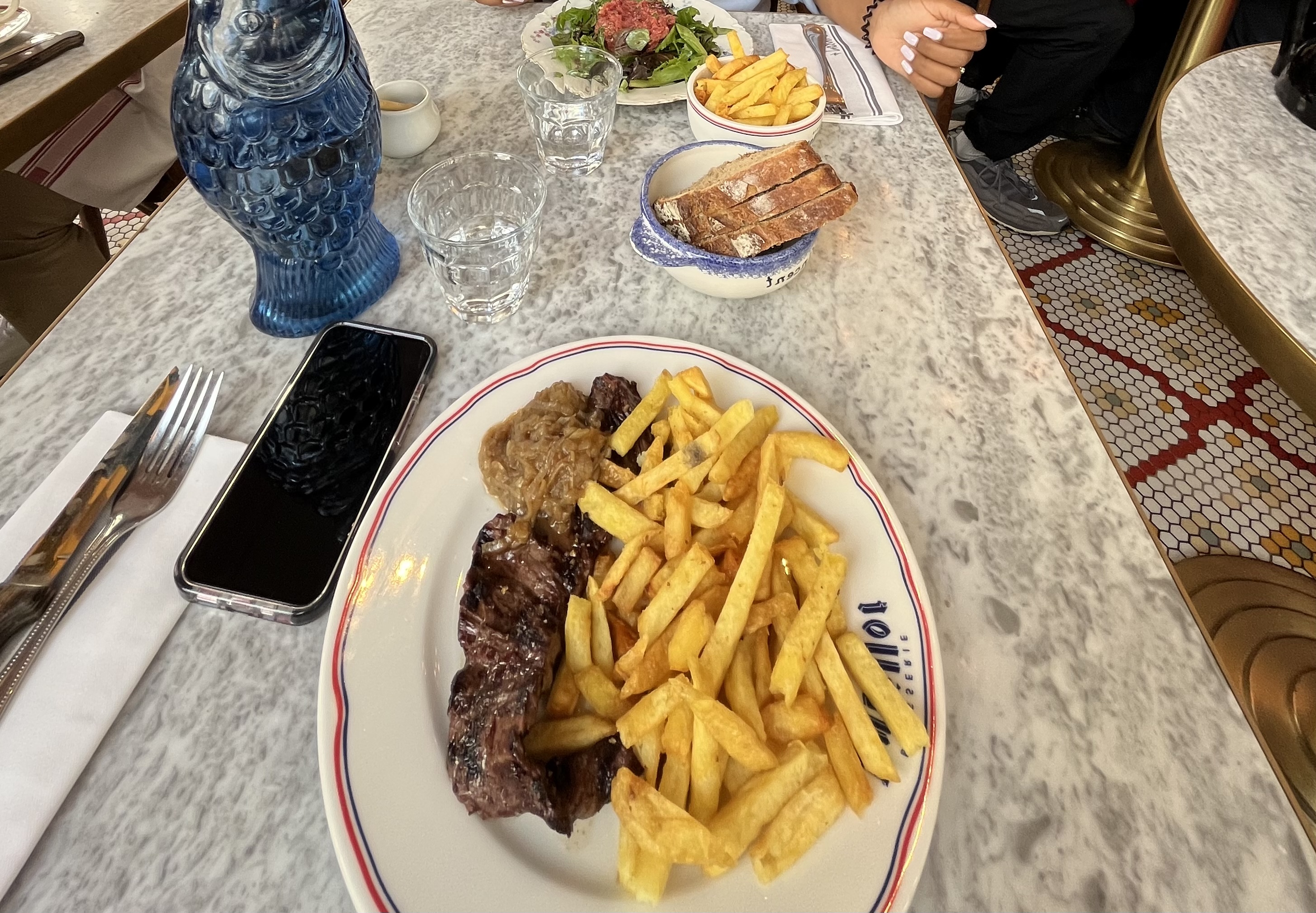 Les entrées sont vraiment au top pour un prix plus que raisonnable ! Le tartare à la française était également très bon, tout comme le dessert qui était costaud ! Les mosaïques à l’intérieur donne un charme à cet endroit et le service était impeccable.
