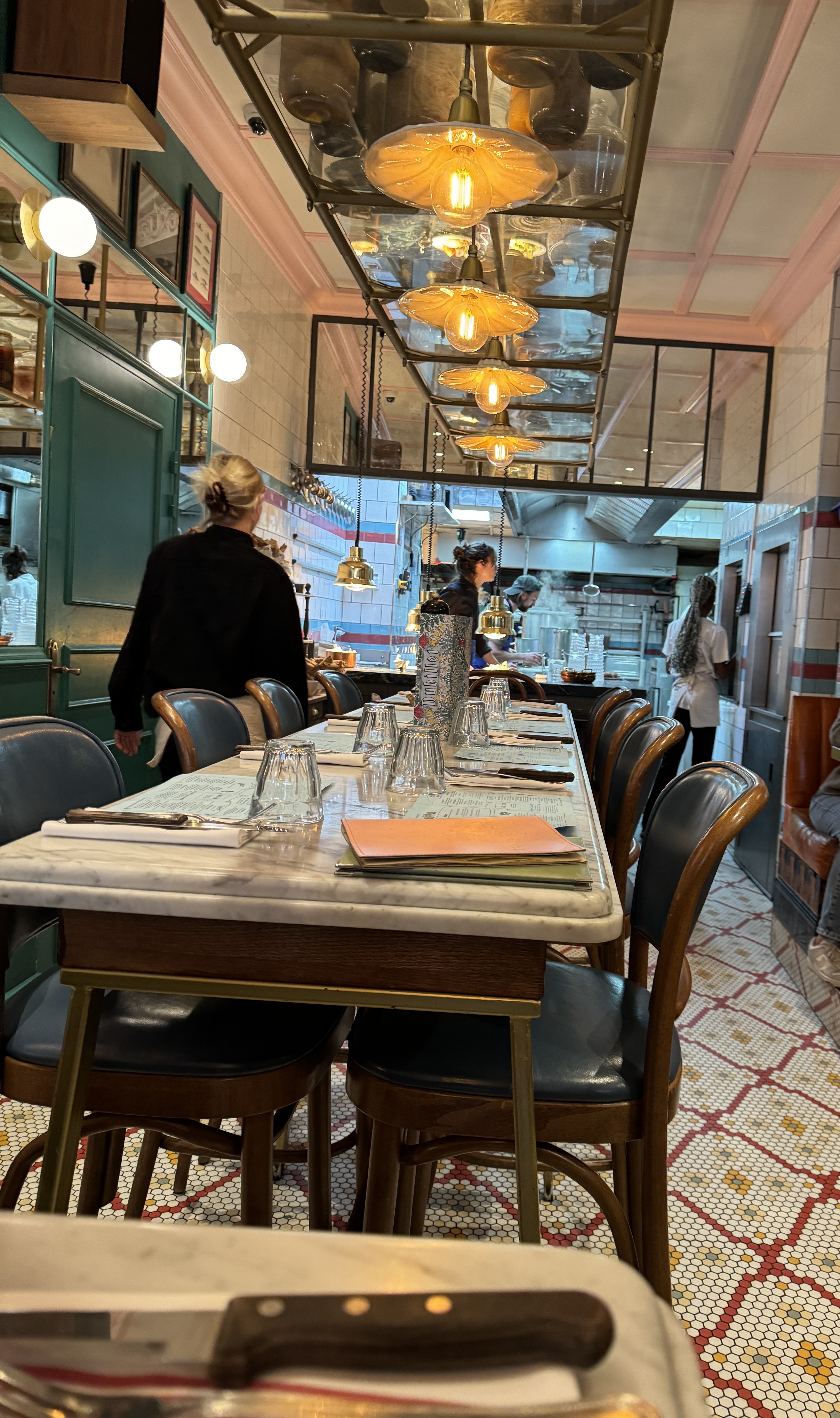 Incroyable bar, j’étais séduite non seulement par la décoration et la qualité culinaire mais aussi par l’incroyable accueil des serveurs, avenants et au petit soin, anticipant toutes nos demandes et envies. Je m’y suis sentie si bien accueillie par la générosité d’Anis, que ma visite d’une heure s’est prolongée jusqu’à la fermeture, temps pendant lequel j’ai dessiné la montée d’escalier que je trouvais très belle. Je vous partage donc cet instant magique dans le Dubillot que je recommande chaleureusement.