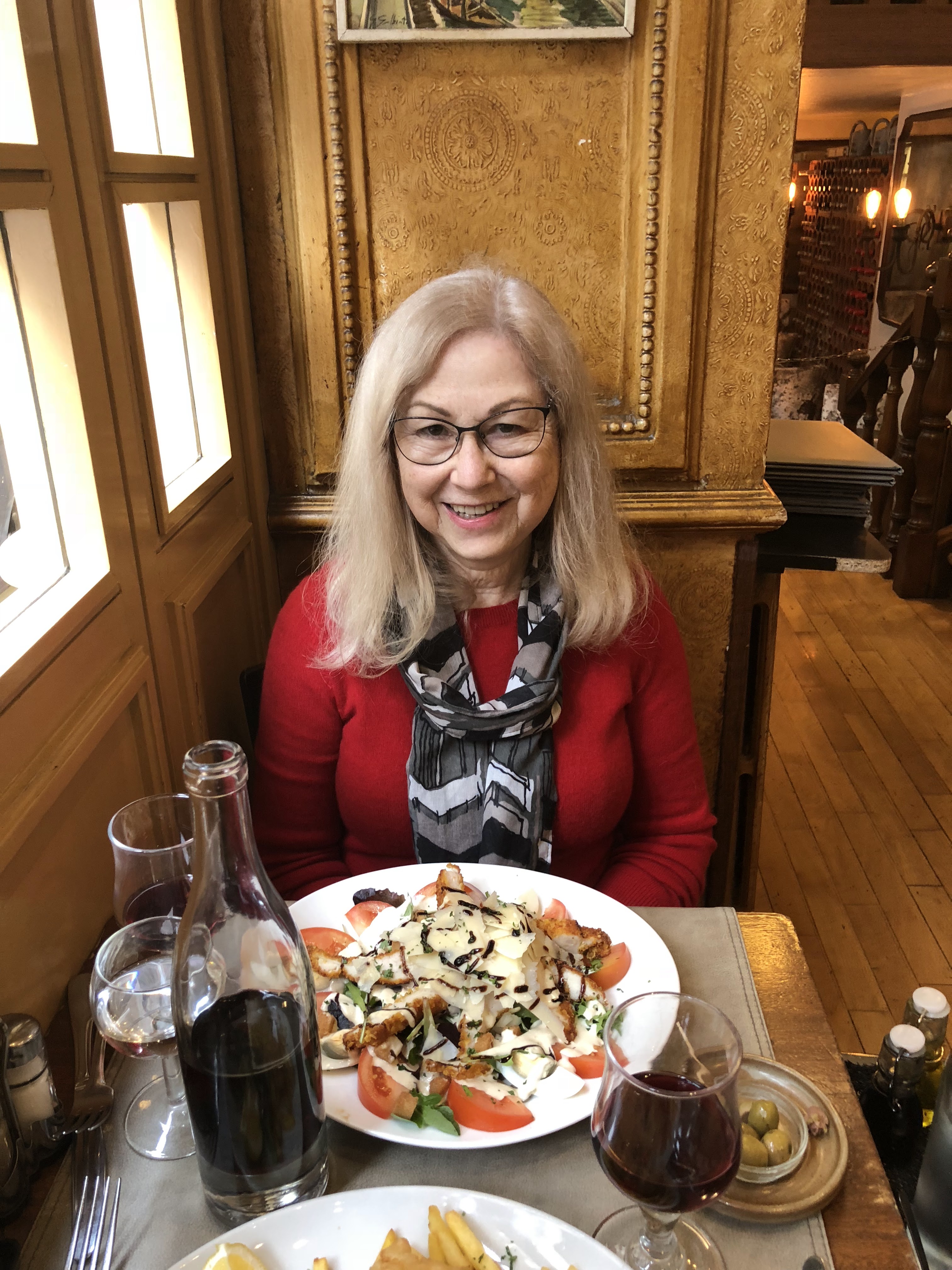 C'était l'un des meilleurs repas que j'ai eu depuis longtemps. 2 dames semblent diriger ce pub Belle Epoque. Le menu est limité mais 2 d'entre nous avaient la sole sur l'os. Une demi-minute de cuisson et c'est du caoutchouc. MAIS c'était parfait. Une pomme de terre bouillie noyée de beurre (miam) et un mélange d'épinards, courgettes et carottes l'accompagnaient. Nous avions une assiette pour l'os d'un quart de citron. Et une lingette pour les mains. Un ami avait du bœuf dans une sauce au poivre. Délicieux. De jolis verres de Sancerre bien frais pour accompagner. Nous nous sommes limités à 2 des desserts alléchants. Un tiramisu léger et crémeux avec une génoise imbibée de marsala et une bouchée de délicieuse tarte aux agrumes. Ils étaient vraiment soucieux que nous profitions de la nourriture. C’est pour nous tous un moment fort de ce voyage à Nice.