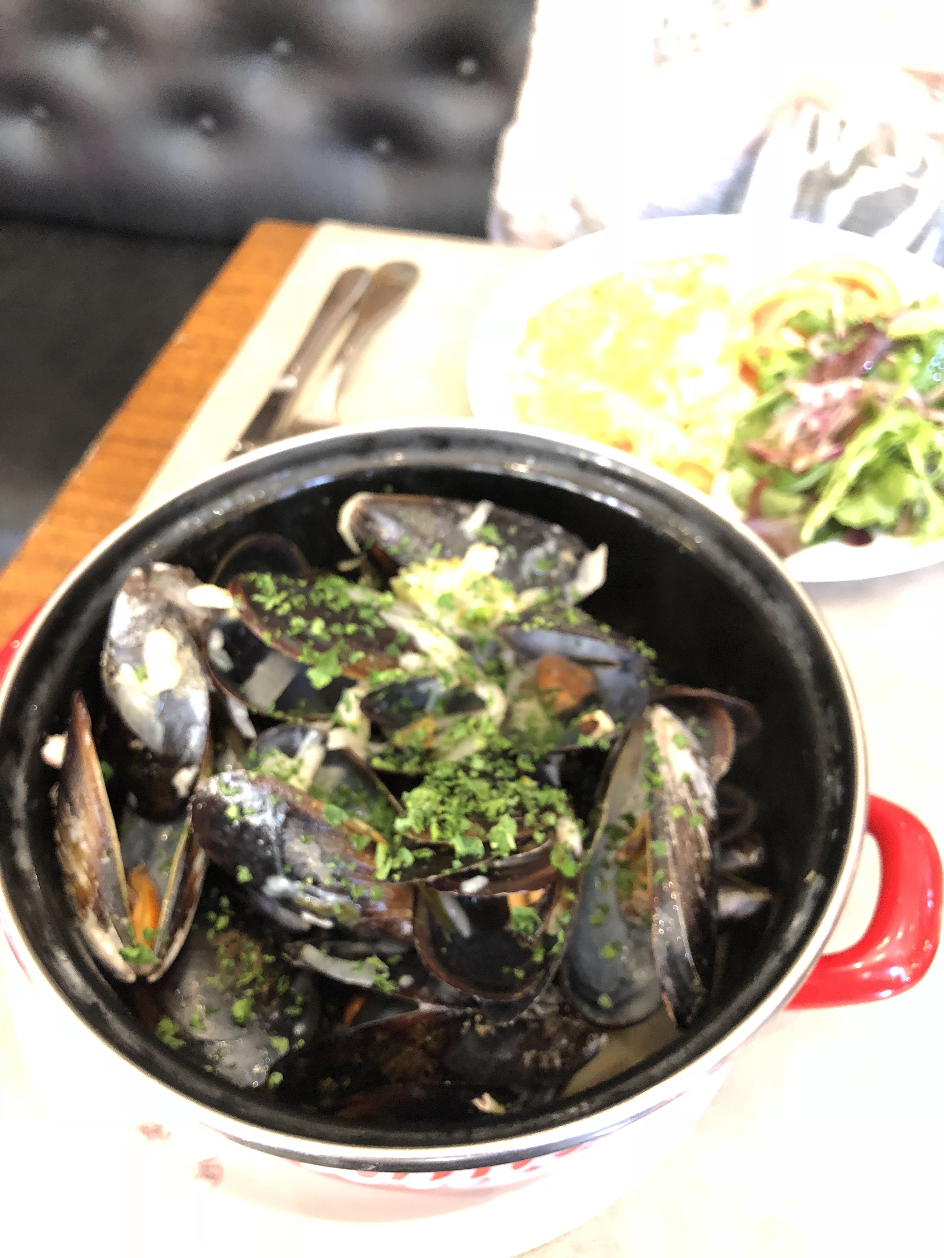 Lieu historique également dans son aménagement, peu éclairé. Excellentes mules et frites et bière de qualité