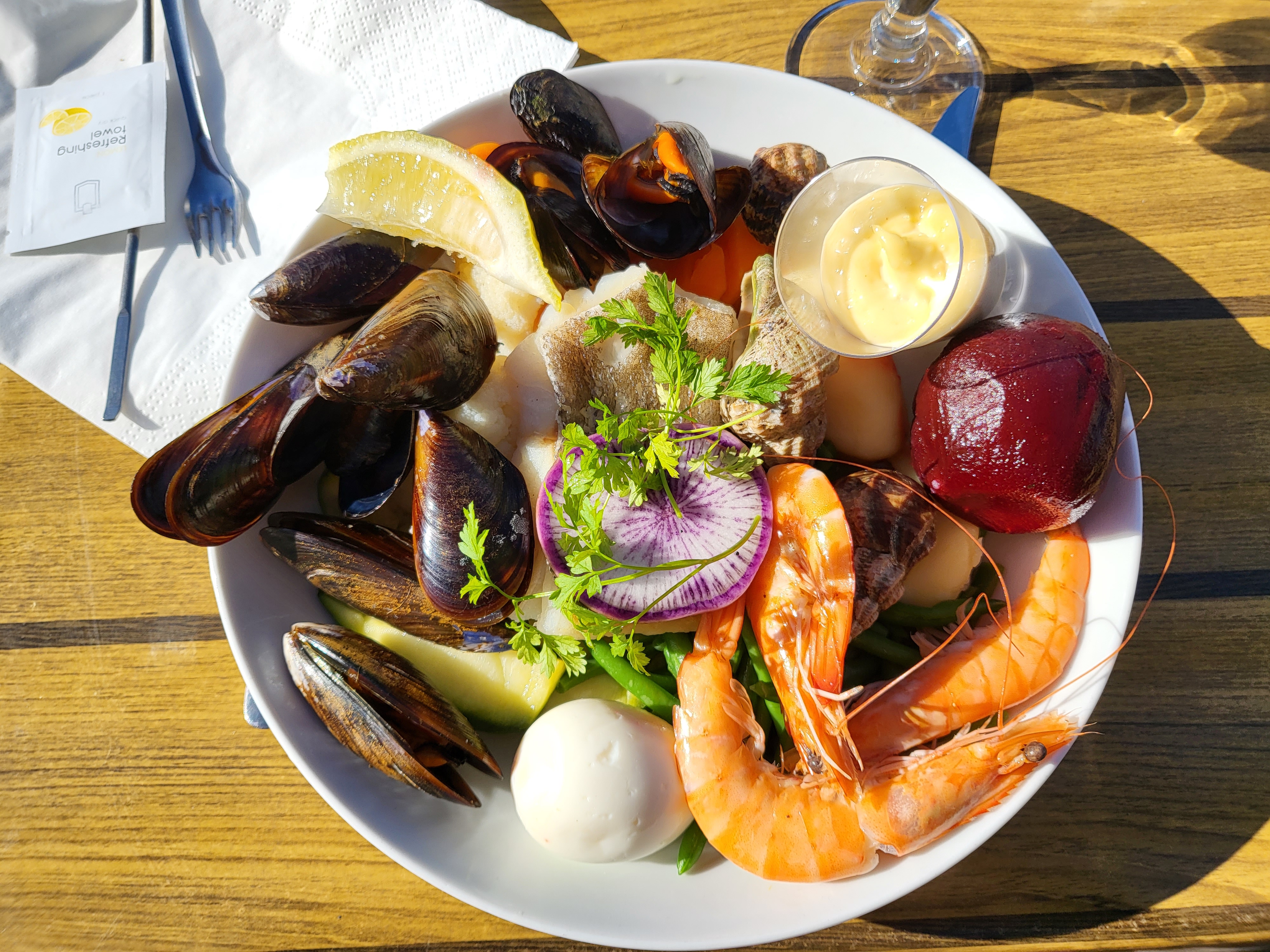 L'esprit brasserie est là, quantité, rapidité, service donc tout va bien ,mais on vient pour déjeuner donc la qualité est primordiale! Un plat du jour prometteur l' Aïoli aspect pas mal , mais la qualité n'était pas là, légumes et moules froides , bulots avec du sable , etc ... Une belle promesse , mais une mauvaise réalisation !