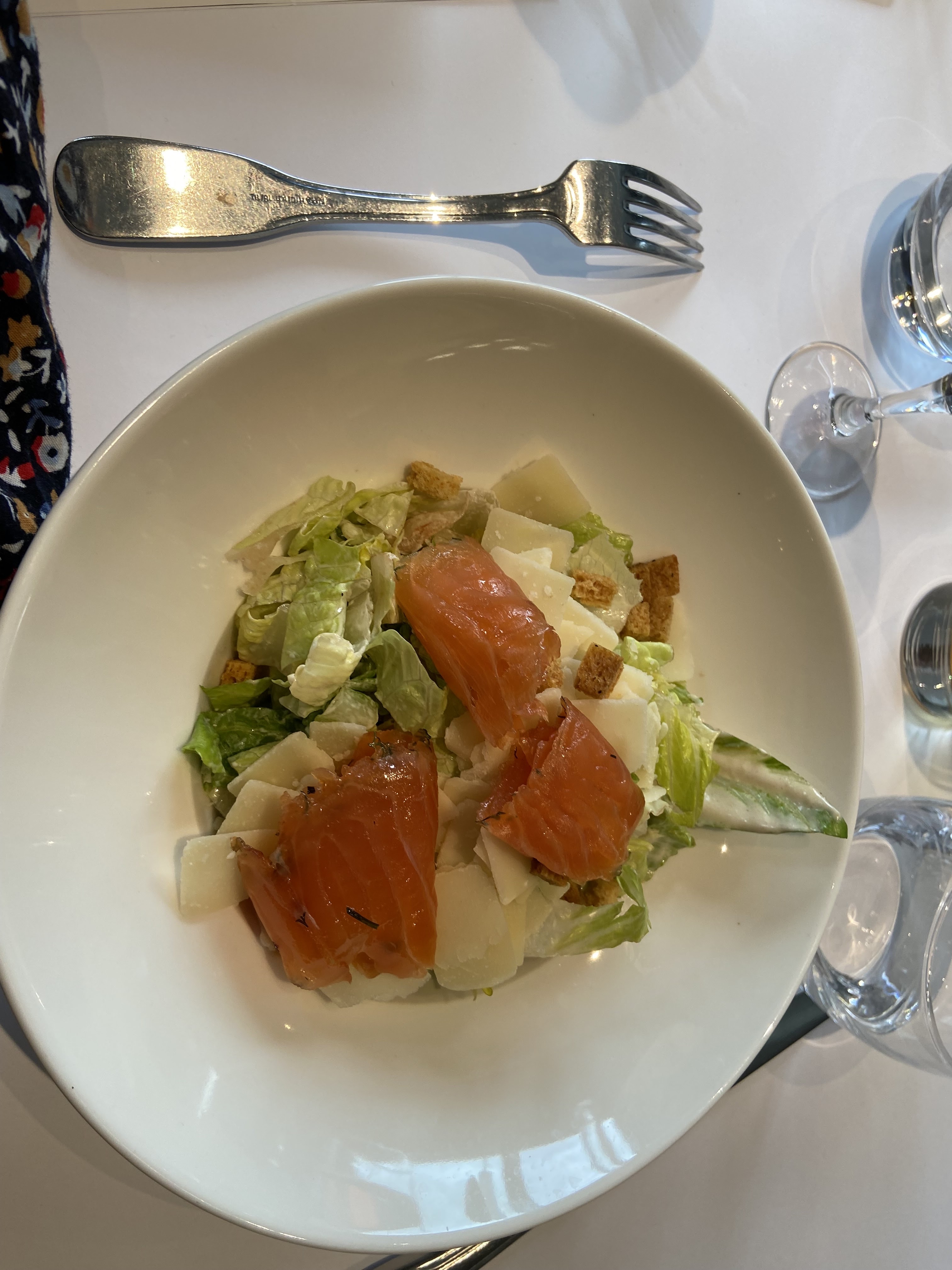 Un accueil glacial de la part du maître d'hôtel, très sec et froid, en revanche des serveurs très souriants et accueillants. Une salade César a 20€ qui comporte à 90% de la salade verte, dépourvu quasi d'accompagnements...c'est pour moi une arnaque! On s'attend à autre chose en rentrant dans ce type d'endroit, j'ai clairement eu l'impression d'être rentrée dans un attrape touristes.