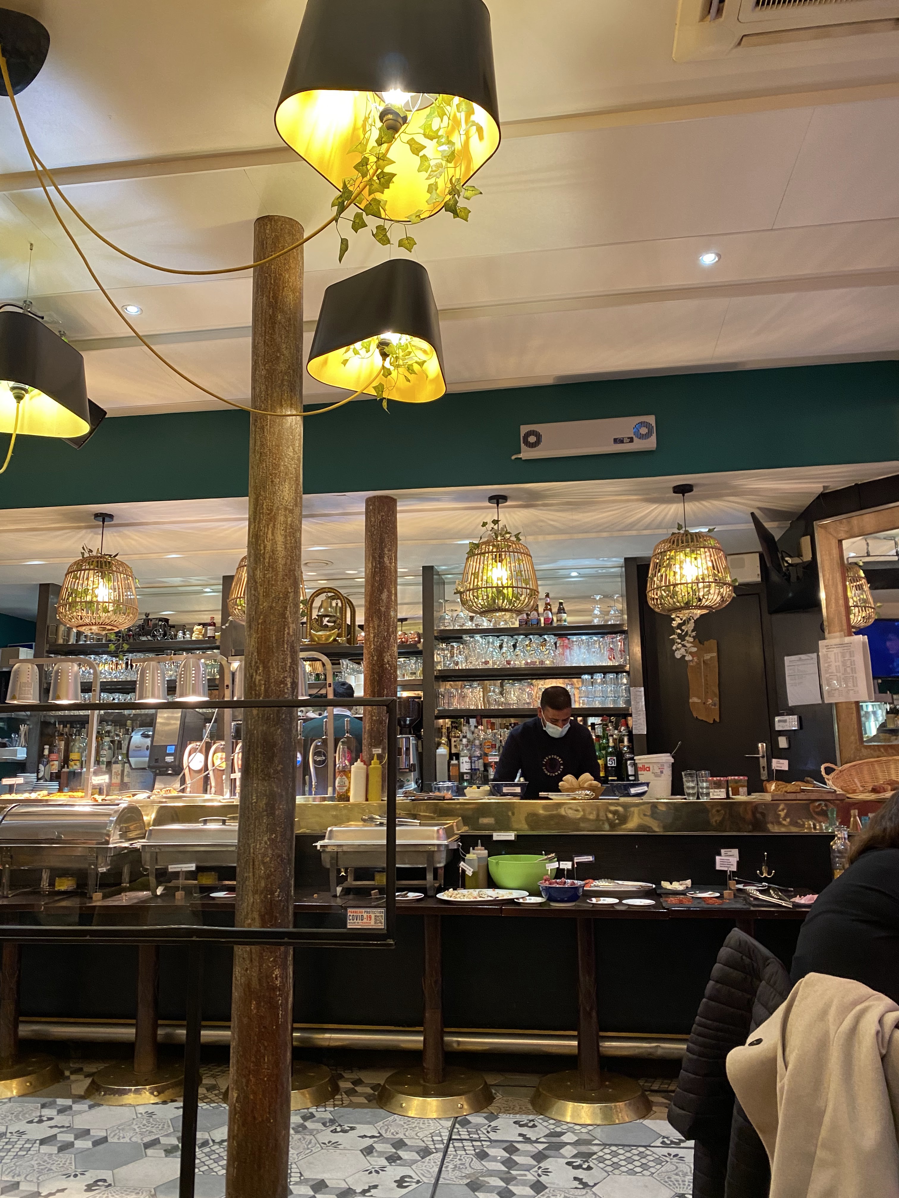 Brunch sympathique, abordable devant le métro. Cadre et décor charmant. Serveuse au top malgré un sous effectif évident. Le buffet était varié et à volonté. Salle au calme sur deux étages. Plusieurs produits maison 👍 Les points négatifs: - Buffet très mal placé, le long du bar dans le seul couloir de passage des entrants. - Des aller et venu de gens extérieur sans masque qui se sèche au-dessus du buffets, malgré les efforts de notre hôtesse pour faire respecter les règles.