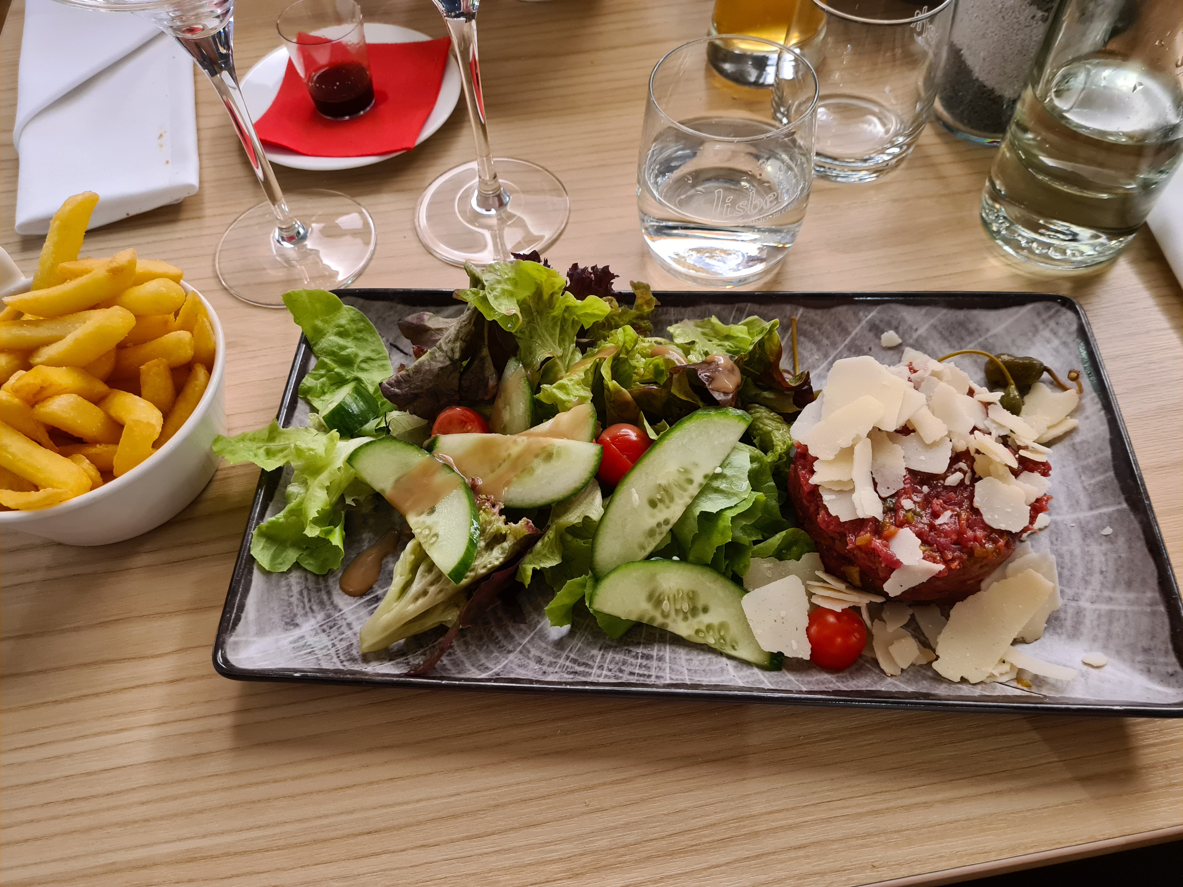 Parfait, très bon accueil , personnel vraiment sympathique , et un tartare délicieux préparé devant par une charmante jeune femme . Un tres bon moment .