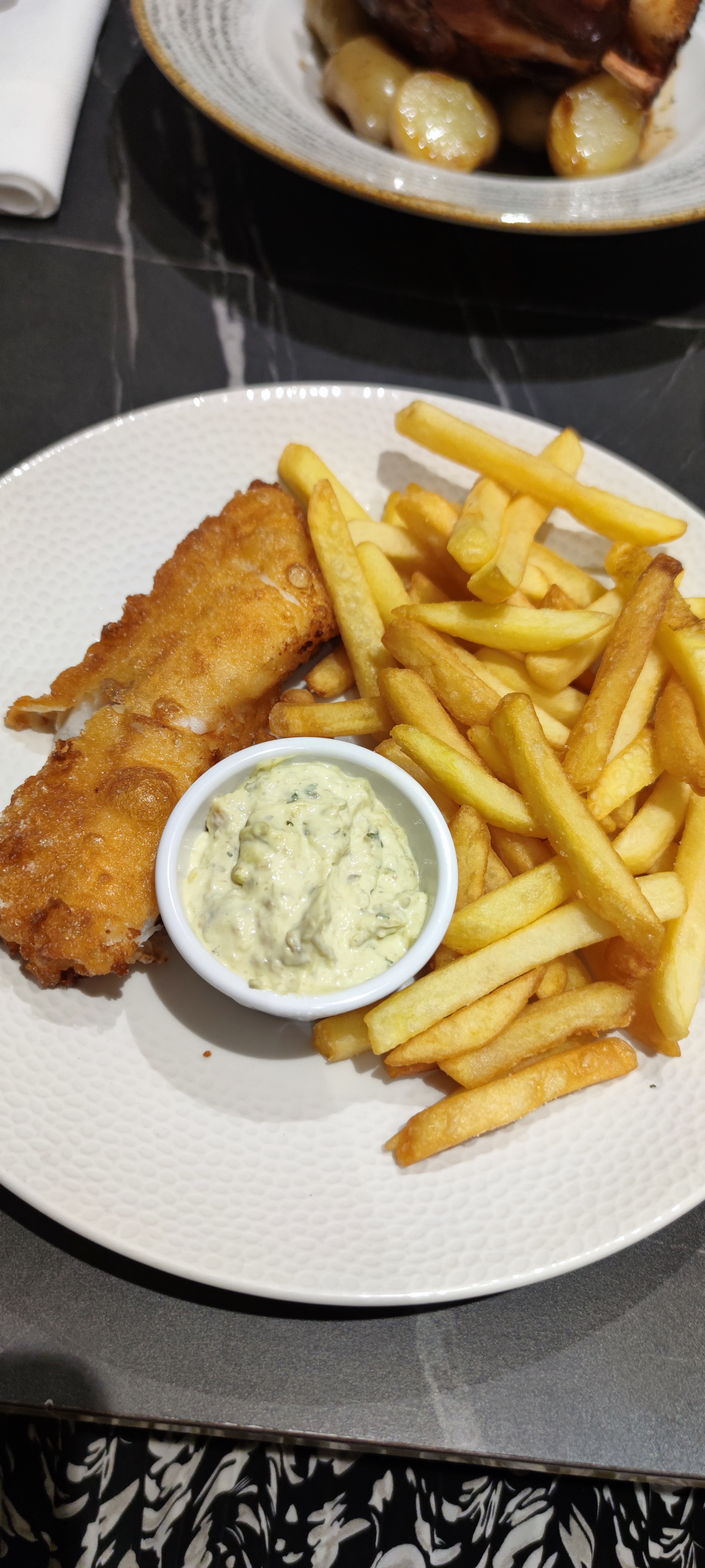Le dimanche la carte est réduite: mais les plats sont tout de même variés même si le choix est restreint. Plats bons et suffisants . Le fish and chips très correct me convenait. La pièce du boucher était savoureuse mais un peu trop petite.