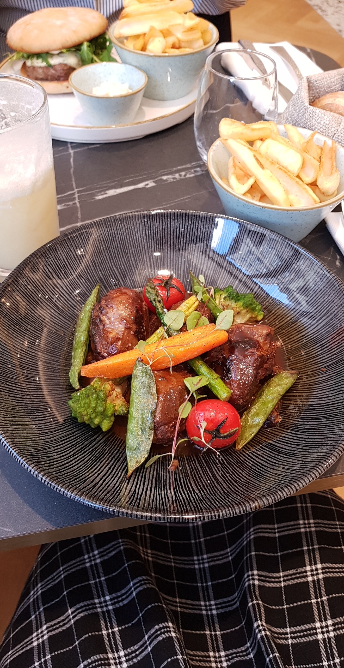 Super sympa. Cuisine comme dans une brasserie. Des prix comme au restaurant. Mais la qualité de la nourriture n'était pas bonne. Le milieu de la nourriture était toujours tiède mais l'assiette était chaude. Je pense que les aliments froids sont mis dans l'assiette puis chauffés dans le four à convection. Je ne peux pas imaginer que l'assiette très chaude et la nourriture tiède soient autrement.