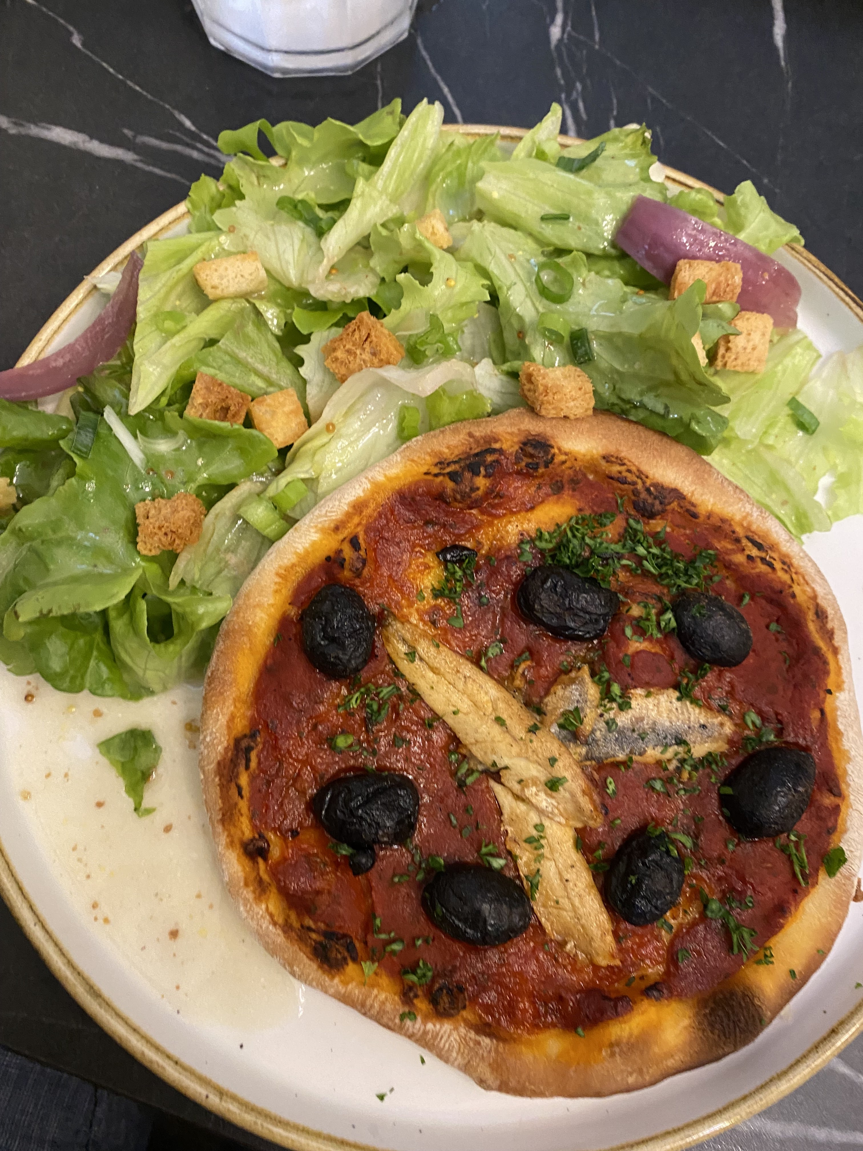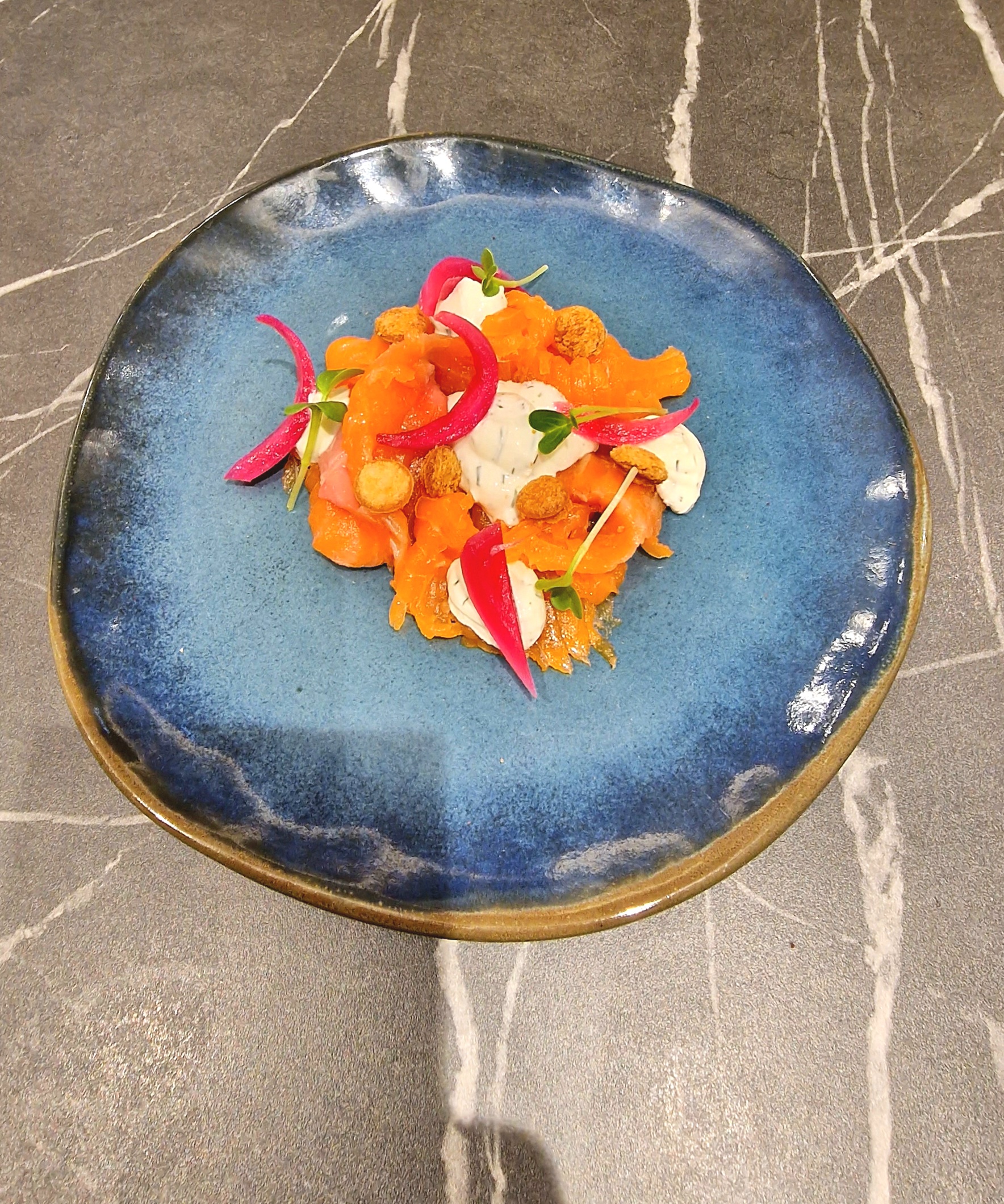 Déco soignée.. carte originale.. cuisine raffinée bien réalisée.. serveuse très agréable et professionnelle, mais étant seule ce samedi soir pour l’ensemble de la salle et la préparation des boissons, elle s’est logiquement retrouvée légèrement débordée par moment (pain et verre de vin ramené alors que nous avions déjà mangé la moitié du plat, boisson en fin de repas qui n’est jamais arrivée).. système super pratique pour payer à table via qrcode sans demander l’addition à la serveuse..