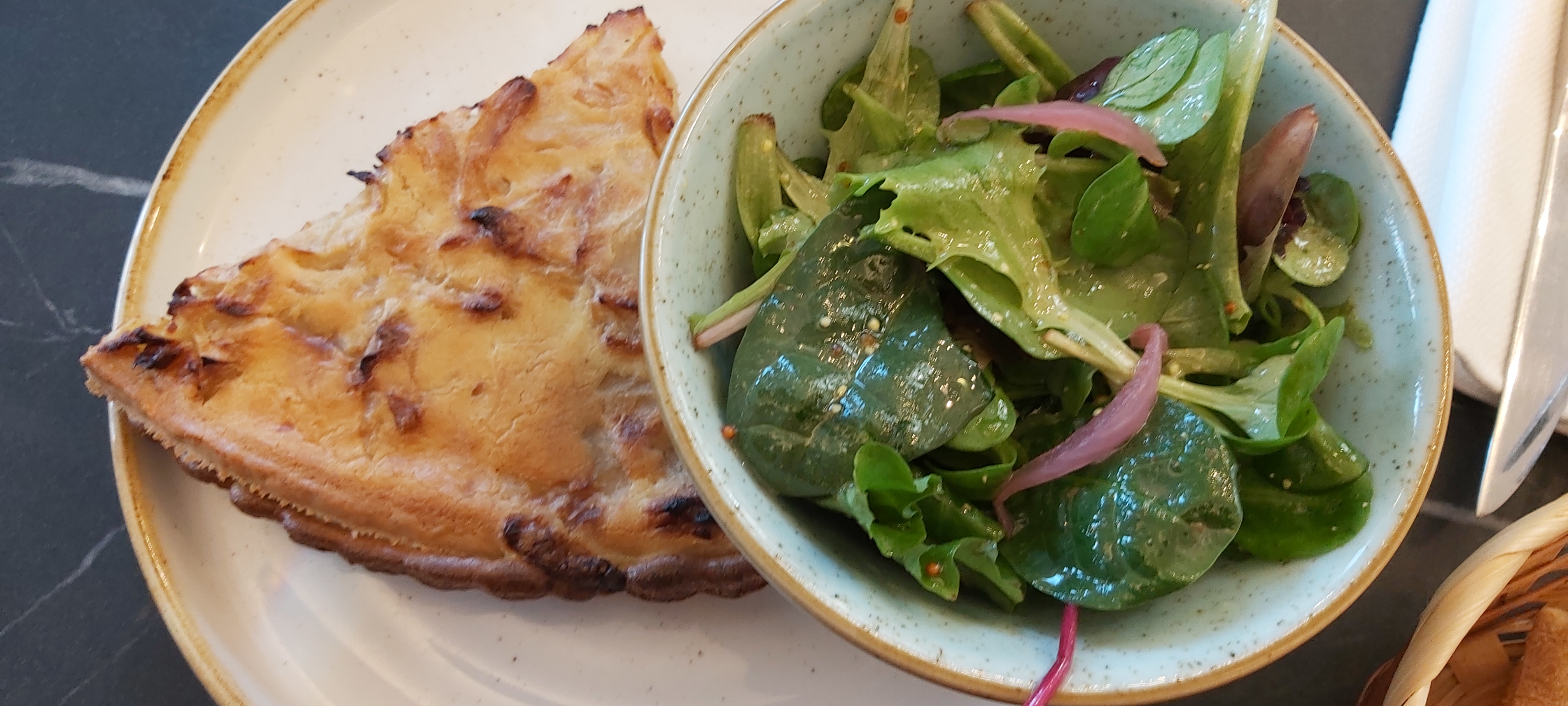 Pas fini notre repas que l'on nous fait comprendre de partir pour installer le petit déjeuner du lendemain, tarte flambée froide pas top