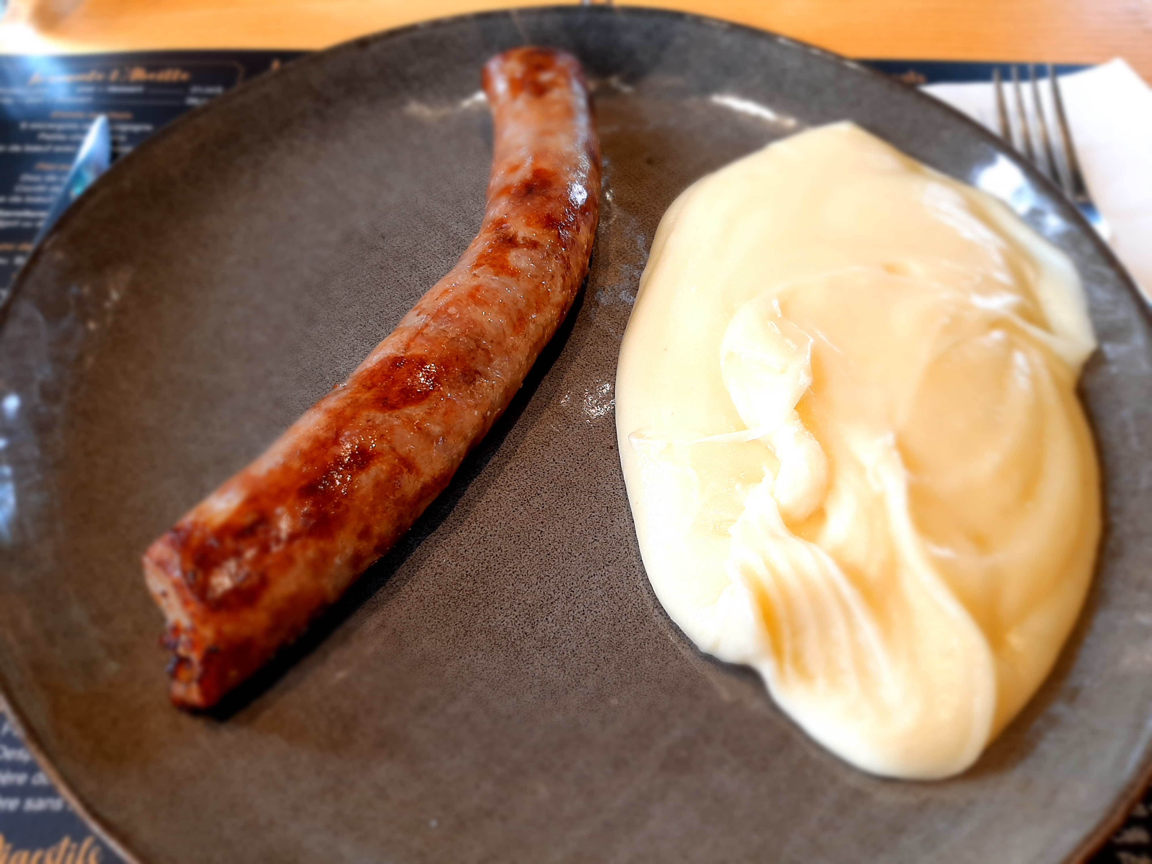 Aligot saucisse commandé pour un adulte et la part dans l assiette était pour un enfant Sans salade sans rien et trop léger pour un adulte vu le prix payé