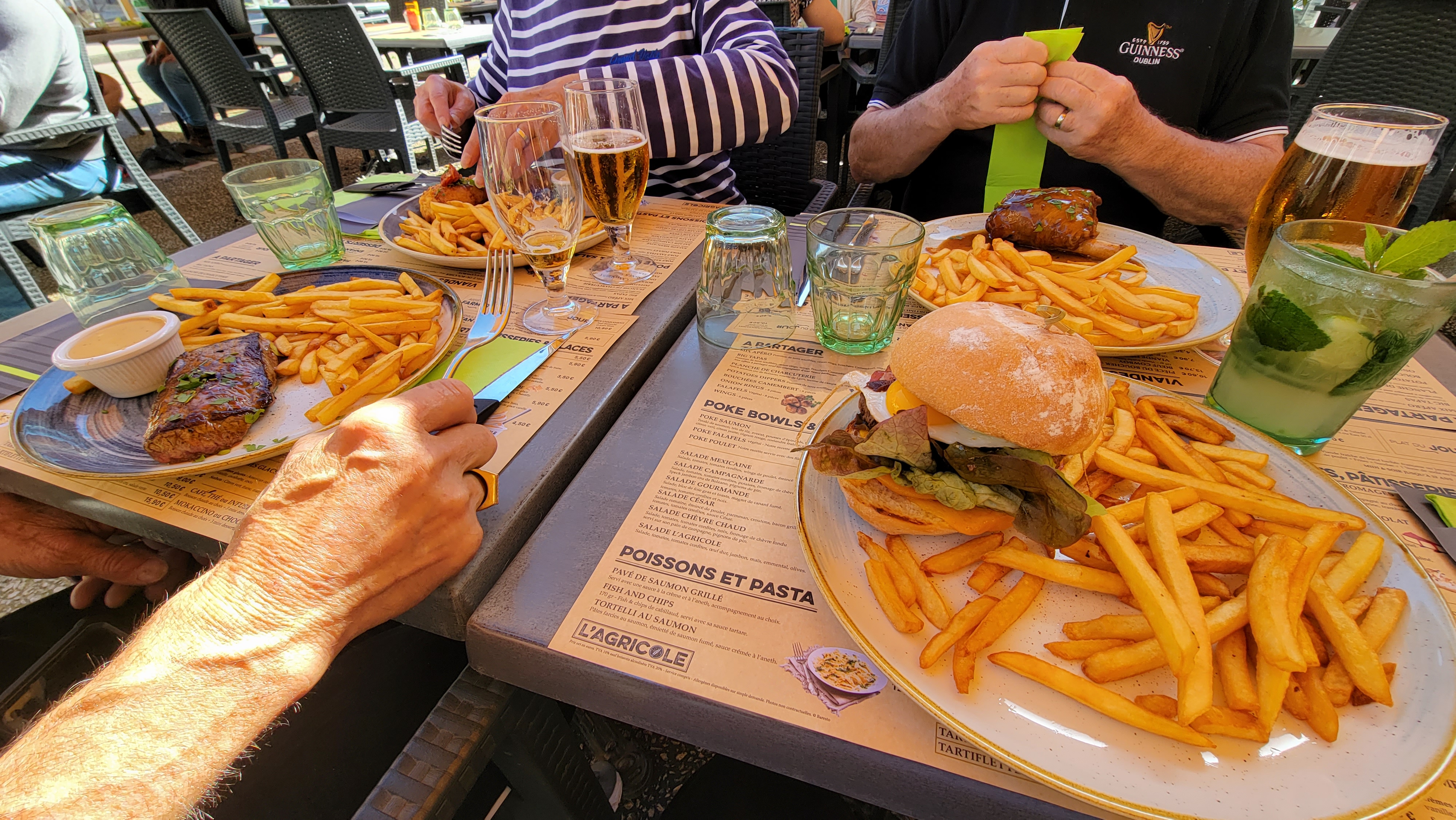Bon emplacement qui nous a décidé de nous arrêter mon fils et moi. Faux-départ nous nous étions d’abord installés chez vos voisins qui n’ont qu’un (jeune) serveur qui ne fait même pas semblant en portant sur son coude ou mollet un masque. Non lui te dévisages si tu en portes un… pourtant ça lui permettrait de cacher un peu la gueule de 3 mètres de long qu’il tire… Décidés à déménager, nous avons ripé jusqu’à l’Agricole, l’accueil fut meilleur et le service rapide et aussi, sur les 4 ou 5 serveurs présents, tous étaient masqués, et qui plus est, sur le nez ! D’autres s’en fichent mais moi, ça m’a décidé de venir chez vous et non ailleurs. Merci