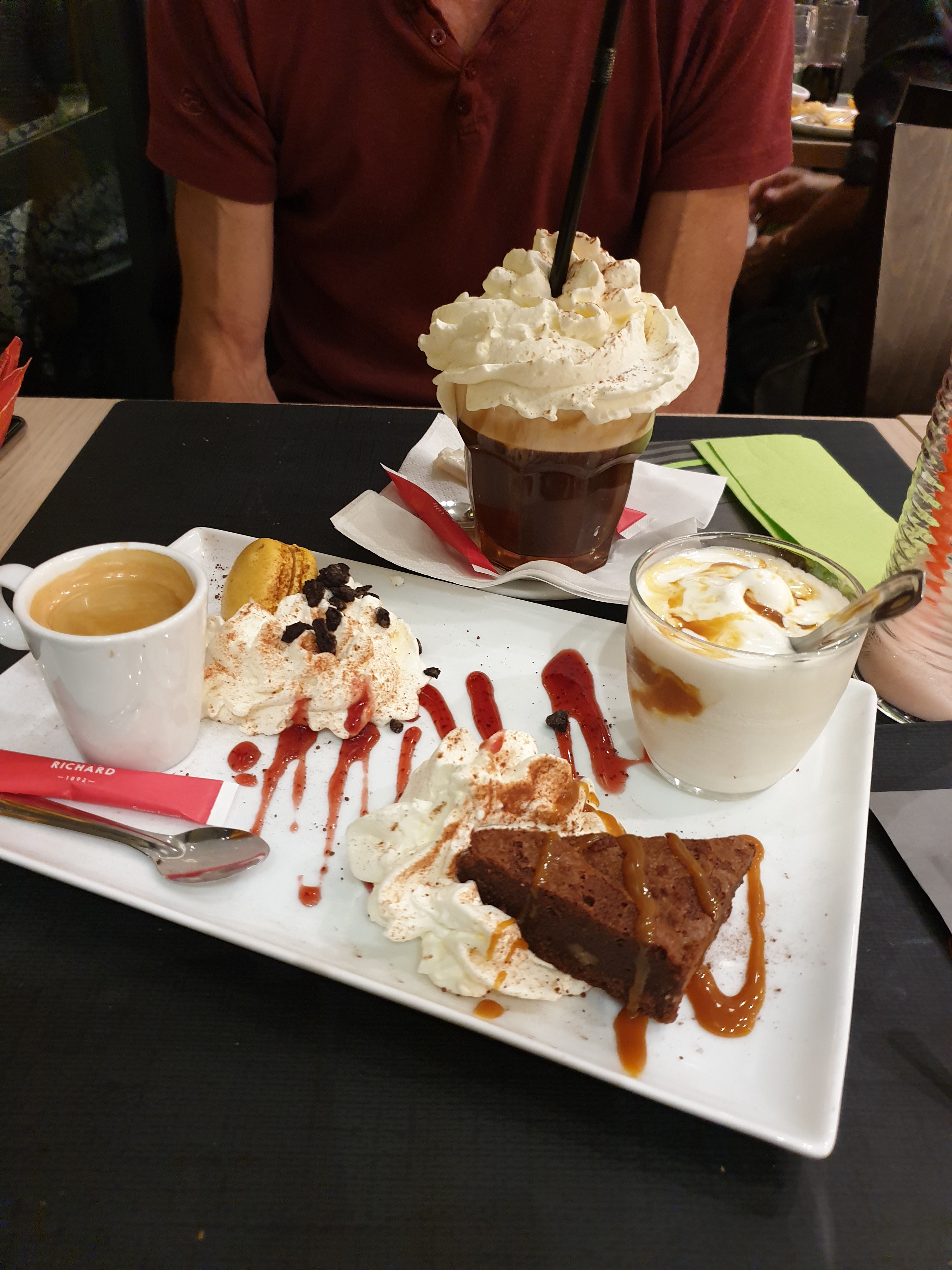 Plats très bon boisson maison et dessert bon aussi mais légèrement trop sucrés, servis par un dénommé Stéphane, très gentil, professionnel et patient. Je recommande rien que pour le service de cette personne