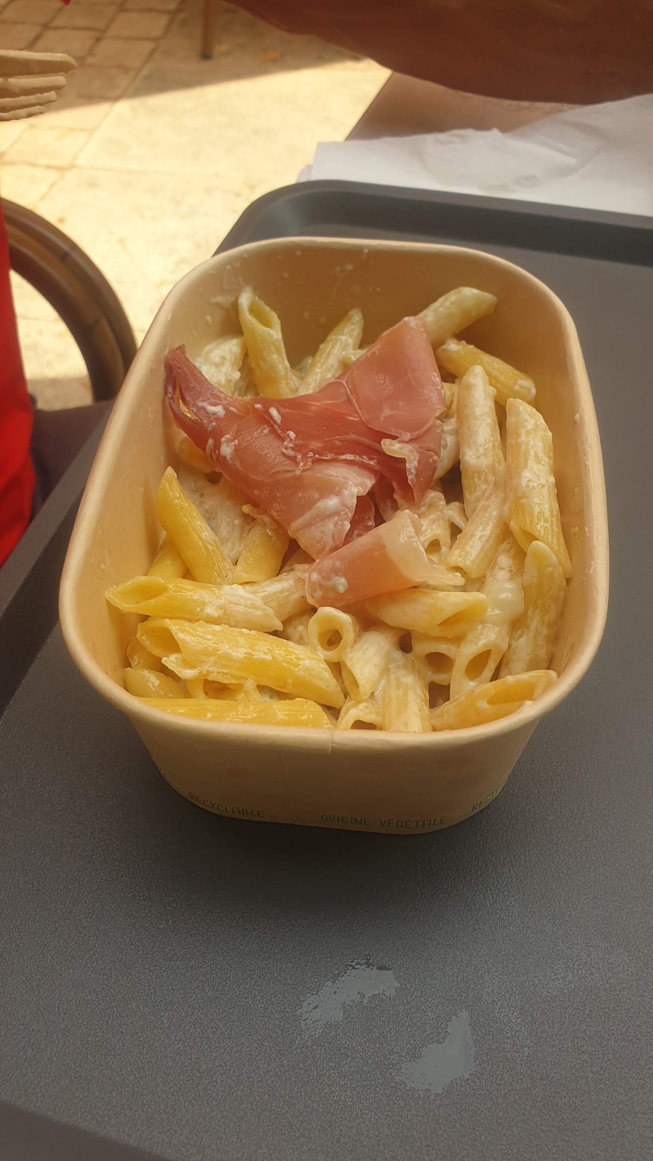 Très bon accueil ! Les pattes étaient délicieuses nous avons beaucoup aimé. Le service est à emporté et vous pouvez manger sur les tables installés devant, c’est atypique et pratique :) Le + les pattes curry poulet 🥰 Très agréable je recommande ☀️