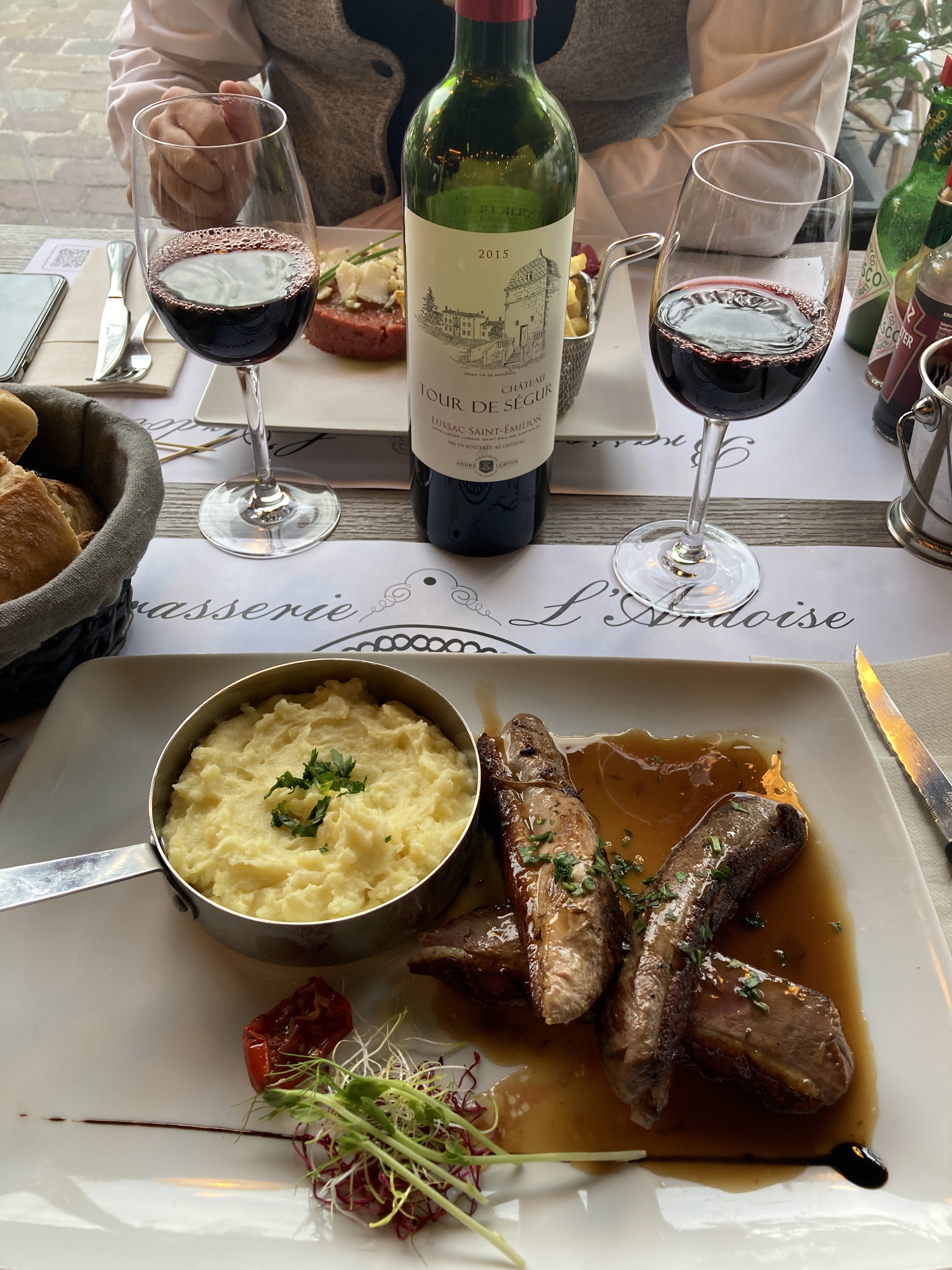 Je sors il y a moins de 1H de ce restaurant dont j’aurais bien mis la Note de 4,8 Presque parfait. De très beaux plats, élégants et bien garnis. C’est moderne et classe. Le service est impeccable 👌🏽 Politesse, tenue, attention envers le client. Le cadre est vraiment très sympa ( Il y’a un certain Raffinement) Gustativement parlant, il n’y a rien à redire. Un beau magret de canard à la cuisson parfaite à en manger le gras 🤤. La purée maison, est moelleuse et croquante à souhait. Mon homme a adoré son carpaccio de bœuf 🥩 dont l’assaisonnement fut un régal. Les prix sont ceux du marché actuel (Covid), parfois même un petit peu en dessous, ce qui le rend d’autant plus intéressant sauf au niveau des vins dont les prix st excessifs. Les vins les moins chers restes excellents. Petit Bémol sur le bouton défectueux des commodités femmes (les hommes st en bas 👇🏽) Et L’intérieur qui fait plus cantine (bruyant, proximité, une vraie cacophonie) Pour moi une excellente adresse dans la région. Je dirais même incontournable.