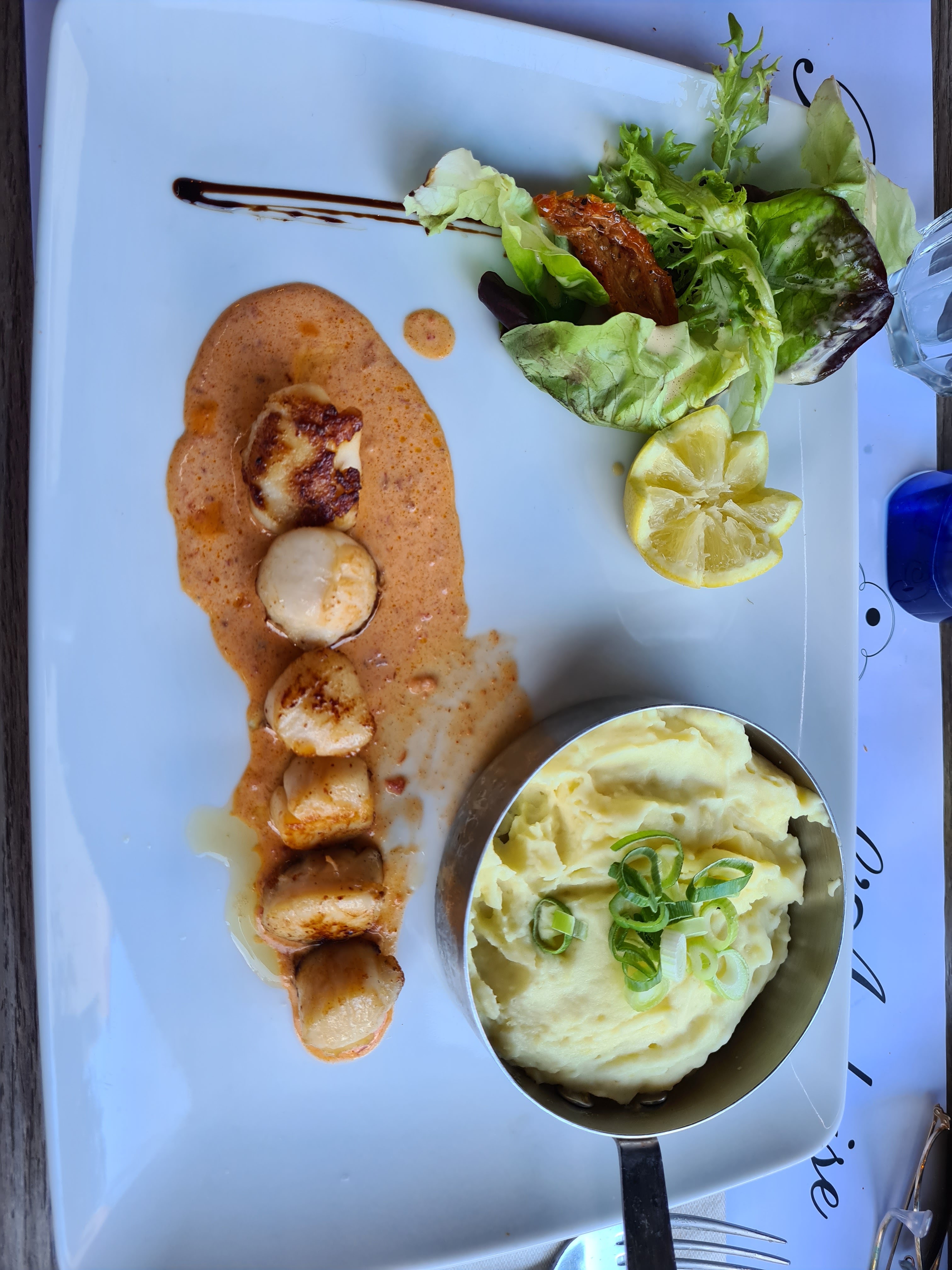 Très bon accueil, personnel sympathique et plat de résistance à base de poisson super bon. Je conseille sans hésiter.