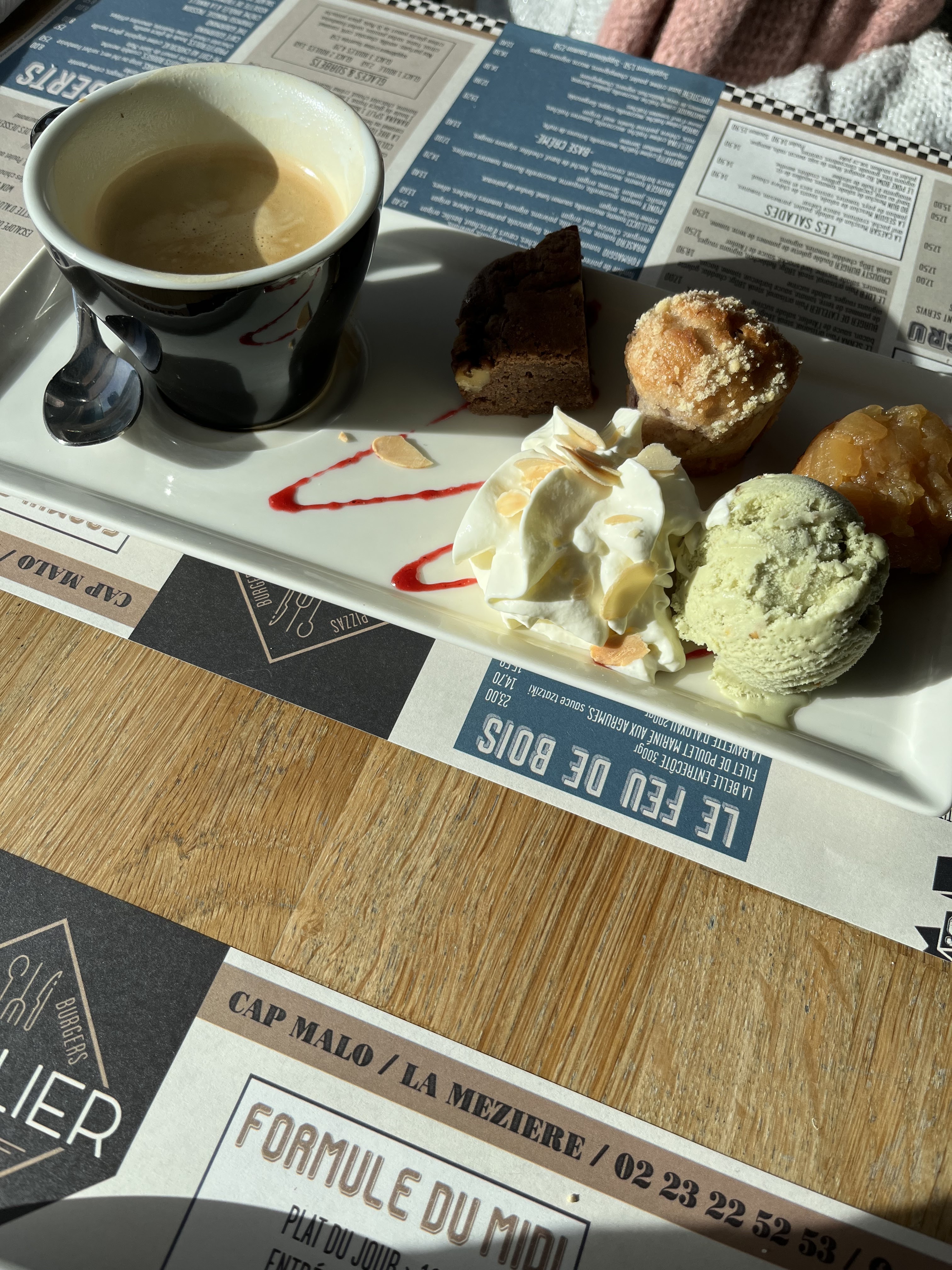 Repas parfait il ne restait rien dans les assiettes par contre la serveuse un peu maladroite qui a renverser le café sur mon pantalon Des excuses à peine audible et surtout aucun geste commercial Dommage