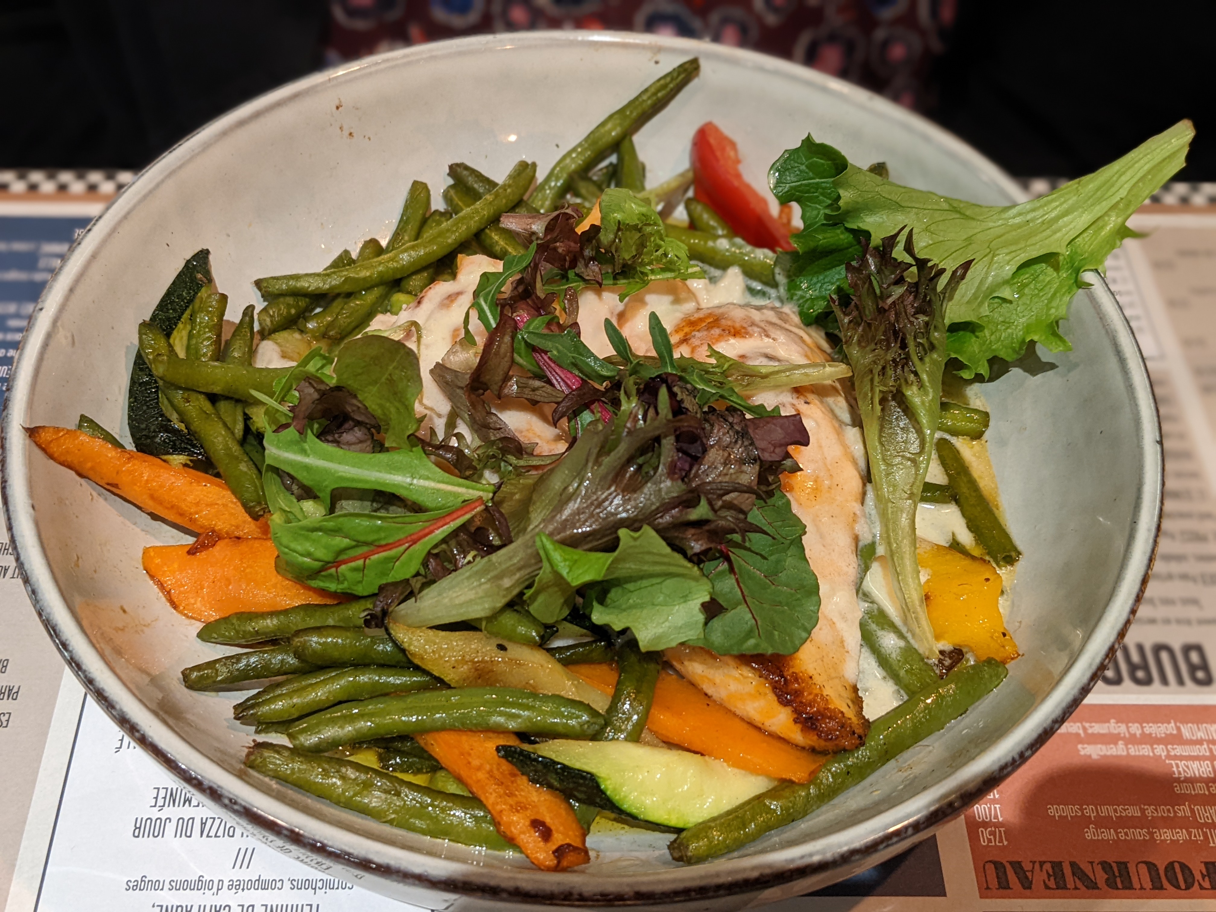 Nous avons dîné dans ce restaurant hier soir avant notre séance de cinéma. Mention spéciale au serveur d’une gentillesse rare qui est même venu nous prévenir qu’il fallait qu’on parte si on ne voulait pas être au retard pour le cinéma!