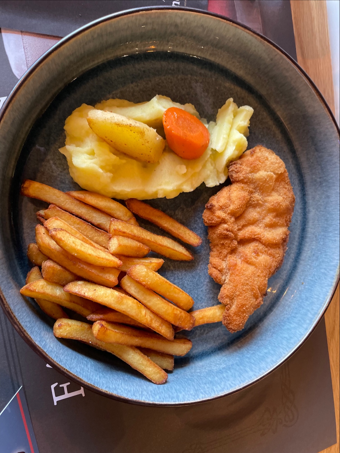 Je suis déjà venu à plusieurs reprises, car j'avais bien aimé les proportions et la qualité, sauf que ce soir, très déçu par le menu enfants avec 3 nuggets, sans dessert pour plus de 10 €. Les confrères à proximité proche font mieux pour moins cher... Escalopes fines et trop cuites, sans parler du temps d'attente très long. Je répète, déjà venu avec des collègues de travail, et l'on sortait du restaurant rassasiés. Je ne pense malheureusement ne plus venir...