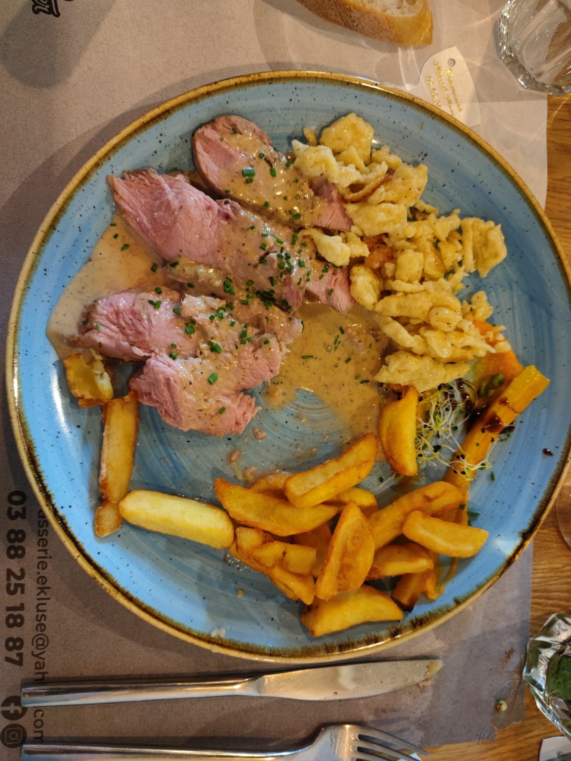 De très bon plat typique et d'autres plus exclusif. Mon plat était très bon malgré un manque de sauce n'aimant pas le munster!...du coup le jambonneau braisé nature avec spaetzle est un peu sec! J'ai conseillé une petite sauce brune ( à la bière c'est top!). Le reste est top 👏