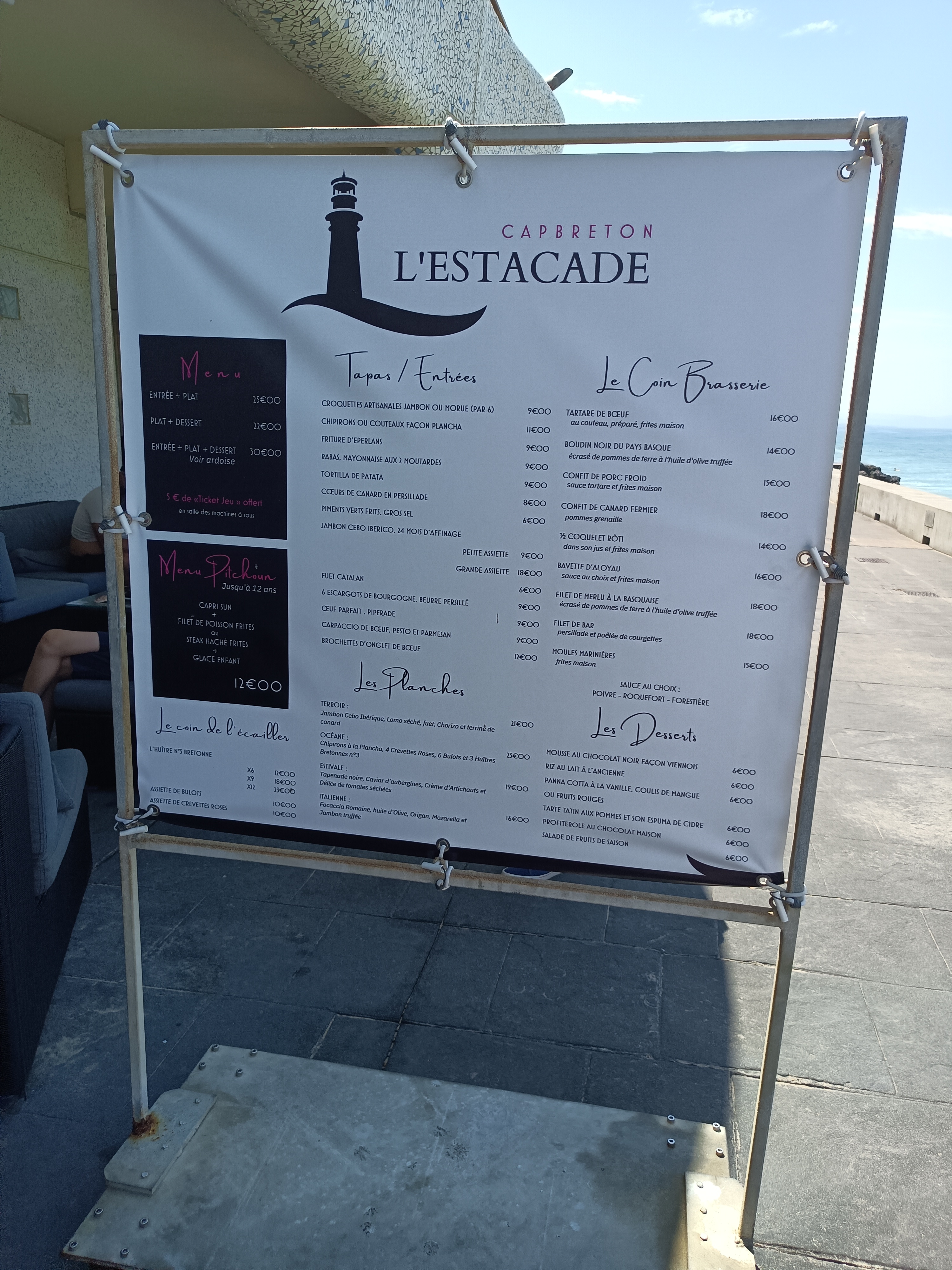 Menu à 19 eueos Salade landaise digne du nom! Axoa de veau, une tuerie Une excellente crème brûlée Vue sur l océan! UN personnel accueillant et souriant Bref! Le top Nous reviendrons sans hesiter