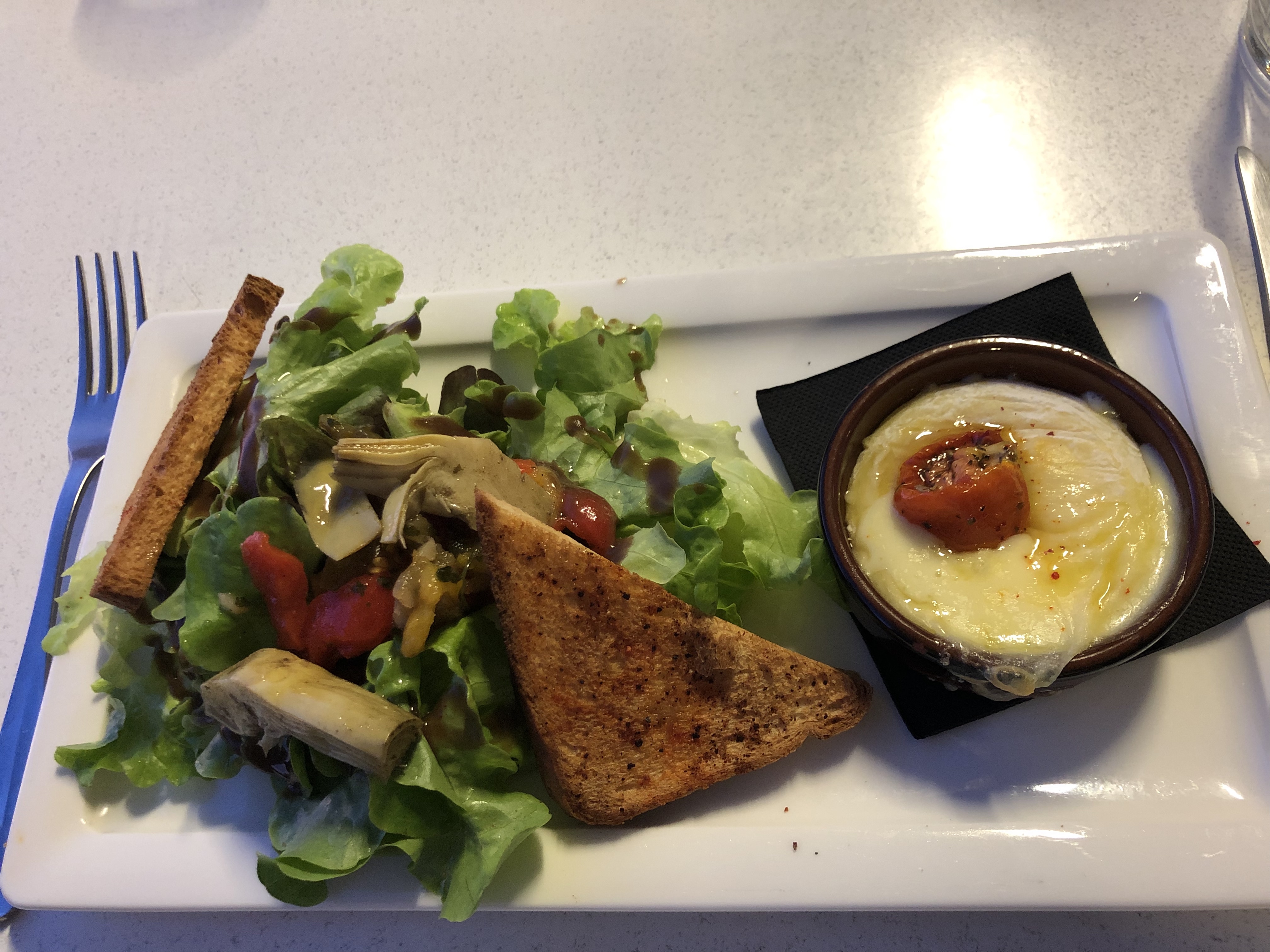 Pan con tomate et pâté basque vraiment pas terrible, je déconseille fortement. Équipe et cadre sympa mais si vous trouvez une place autre part, n’hésitez pas.