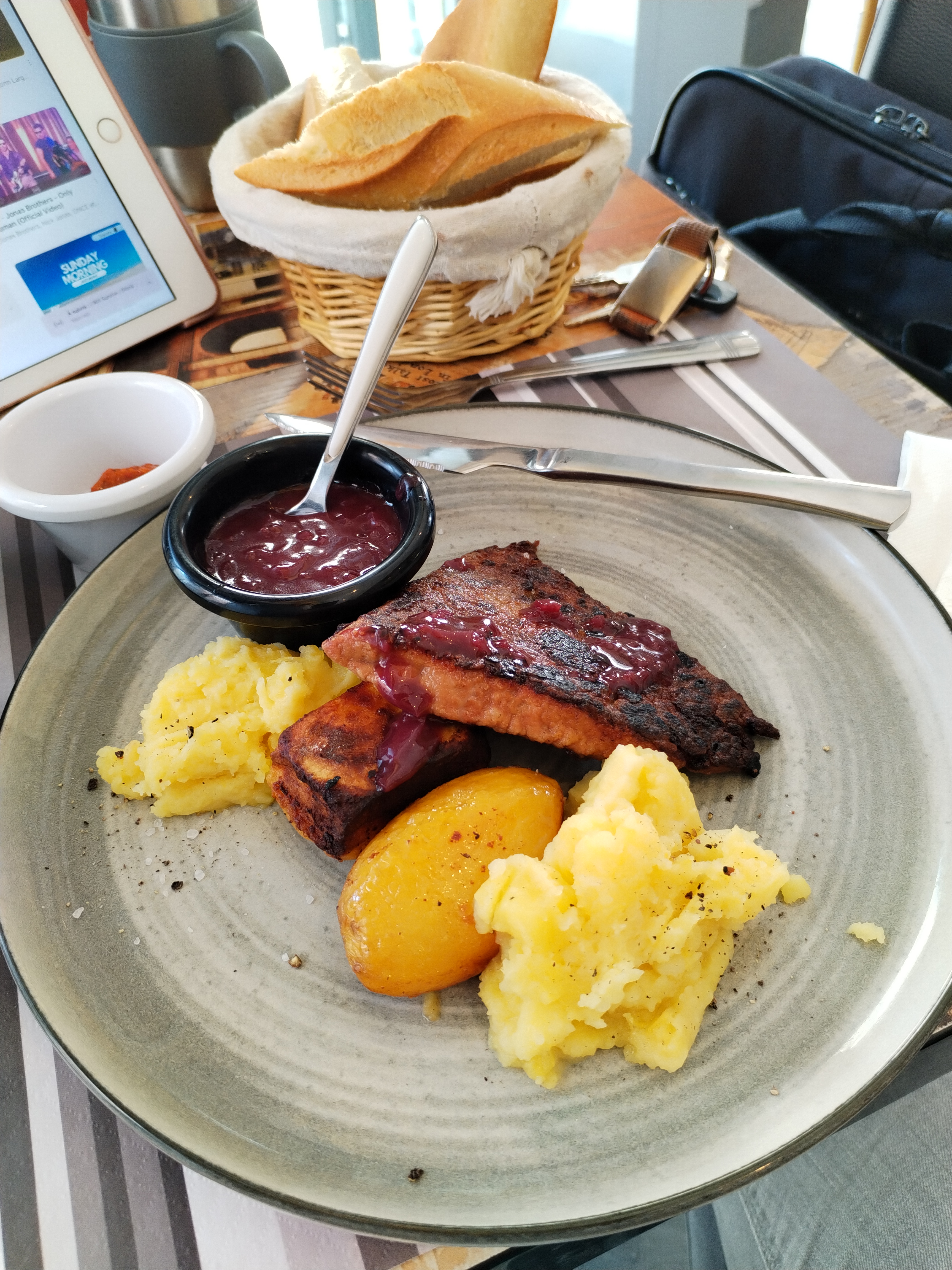 On a super bien mangé : pavé de saumon, entrecôte, mousse au chocolat et café. Serveur très poli et réceptif. Brasserie que je recommande 👍
