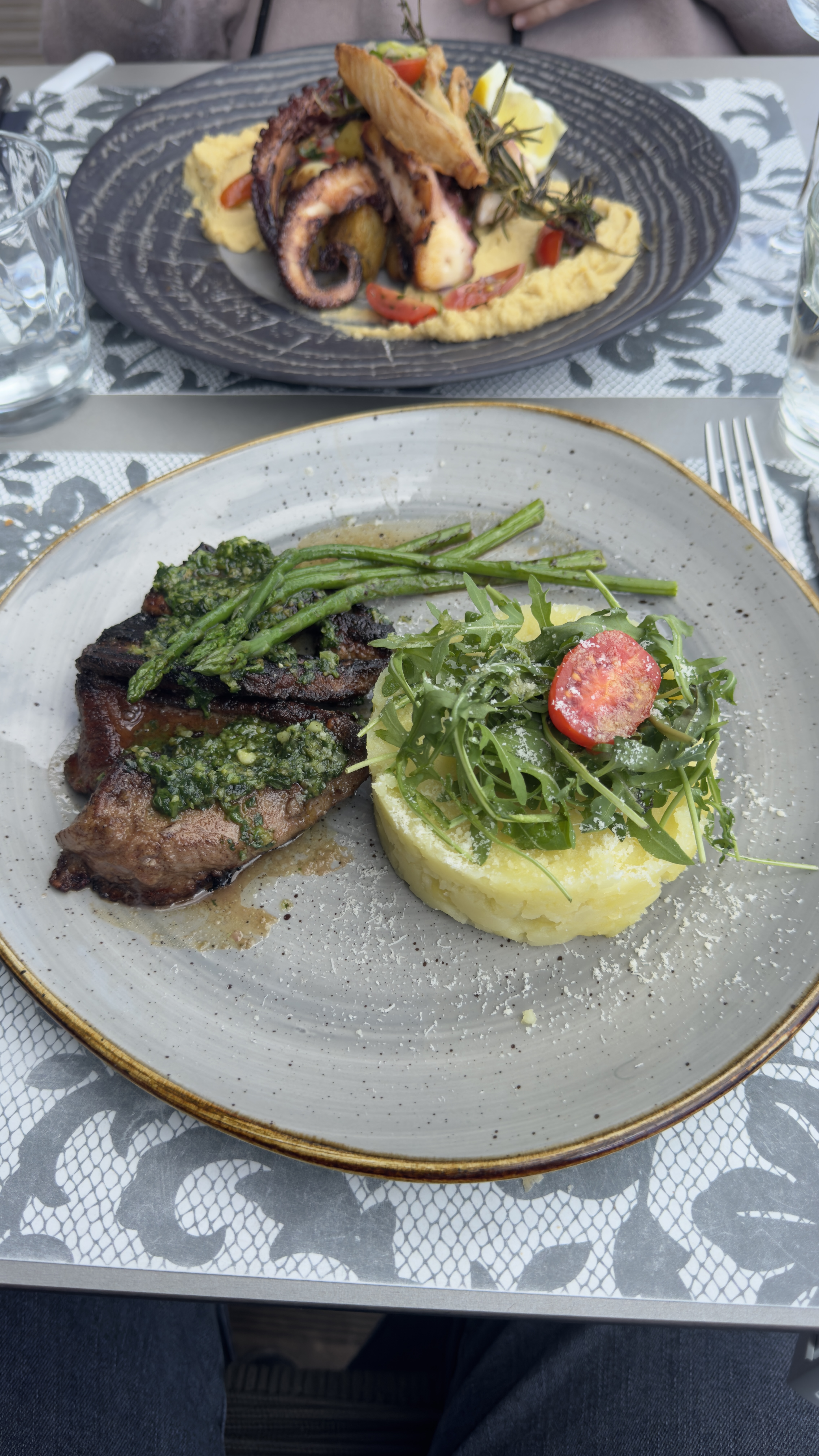 Eh bien, ce restaurant a une vue sur la mer. C'est la principale raison pour laquelle nous voulions dîner là-bas. Avantages. - Il y avait une table à disposition pour nous même si nous n'en avions pas réservé avec vue mer. - Nous avons eu un Martin Rosso c'était bon et puis le premier verre de vin qui pour être exact était du vin rouge Valpolicella à 6 € (un seul type au menu) était bon. - Premier plat, nous avons commandé le fromage de chèvre chaud. Très savoureux😉. Les inconvénients - Le service n'était pas bon. Une fois assis, la dame/serveuse ne nous a pas demandé ce que nous voulions boire. Elle est juste arrivée avec un menu français écrit à bord et est partie. Elle n'a pas dit que c'était des suggestions sur la maison. - Ensuite, nous avons commandé un menu en anglais au jeune serveur. Et il a fallu beaucoup de temps pour obtenir le menu, jusqu'à ce que la serveuse vienne. - Plat principal, nous avons commandé un risotto aux truffes. Eh bien, c'était ok mais on ne pouvait pas goûter la truffe mais juste le riz croustillant?. - Ensuite, nous avons commandé un deuxième verre de vin, étonnamment, ils n'avaient plus de vin au menu et il leur restait 1 carmenere à 8 € (seulement 1 au menu). - eau du robinet en bouteille 5€. - quand j'ai dû payer, pour le vin que nous n'avons pas commandé?. Nous n'avons pas eu le courage de commencer à nous plaindre puisque nous avons commencé le dîner avec un mauvais service. Ps. Le cuisinier a fait de son mieux qui qu'il soit?. Le service a tout tué. Dans l'ensemble, nous n'y dînerons plus.