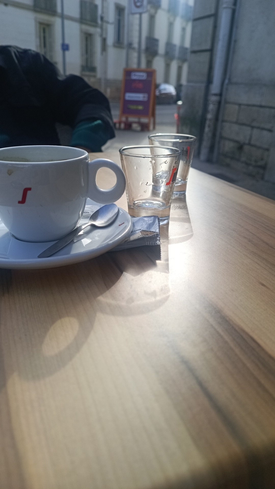 Service rapide, courtois discret. En terrasse on peut reculer son siège sans importuner la personne derrière parce qu'il y a vraiment un espace largeentrekes deux. Les tables dont rondes et larges également. L'expresso en terrasse à 1€50 est bon.