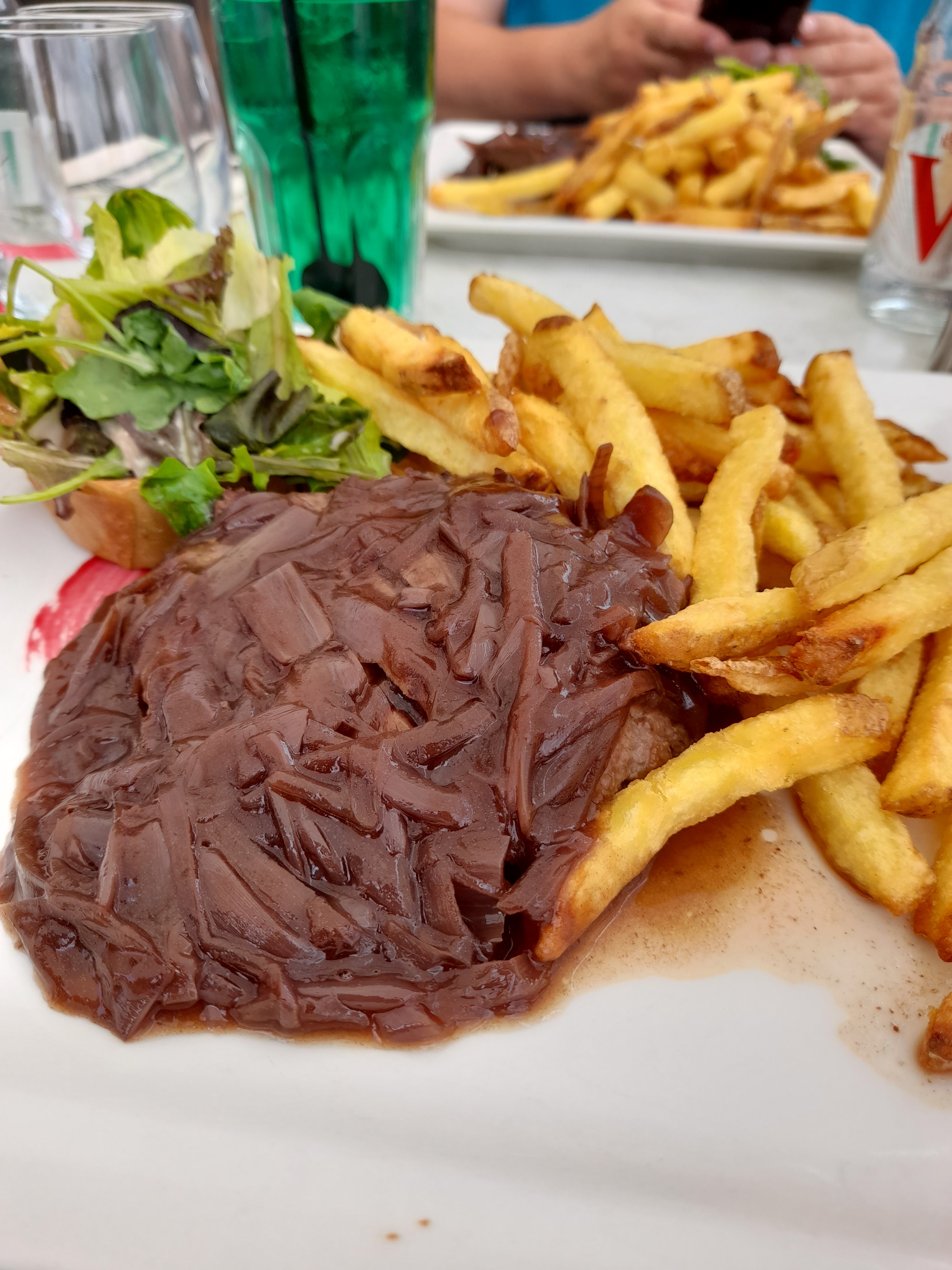 Cuisine familiale et très copieuse ! Un régal pour les oeufs en meurette que j'avais hâte de goûter ! Le poulet Gaston Gérard et la glace au Cassis sont à la carte !