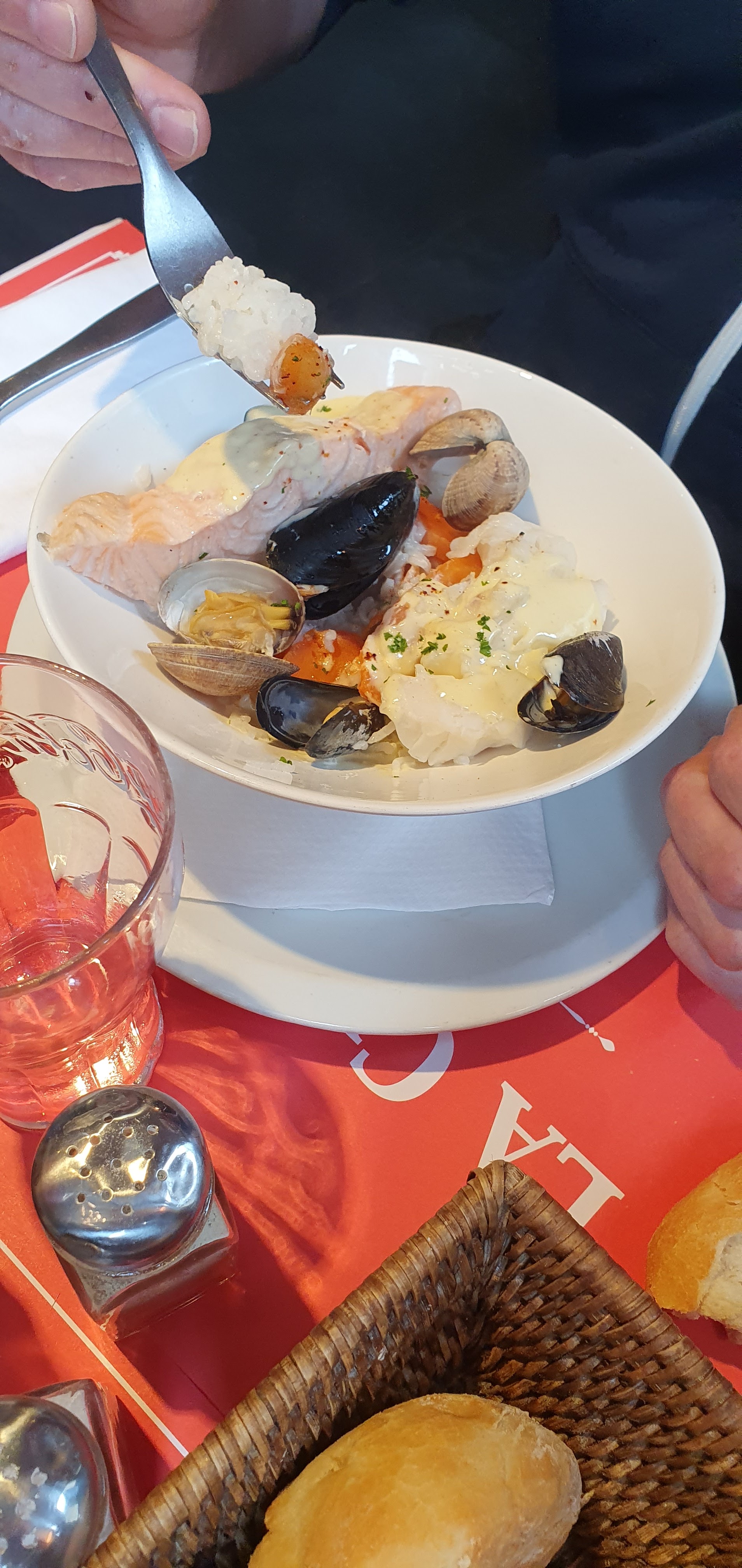 Horrible !!!!!! en commande des moules à la crèmes .. moules pas fraîches (datant de la veille sûrement ) et une grosse cuillère de crème fraîche balance dessus berkkkk!!!! et un tartare de saumon présenté comme de la pâte pour chat (voir photo ) quel dommage c’était une très bonne brasserie avant….