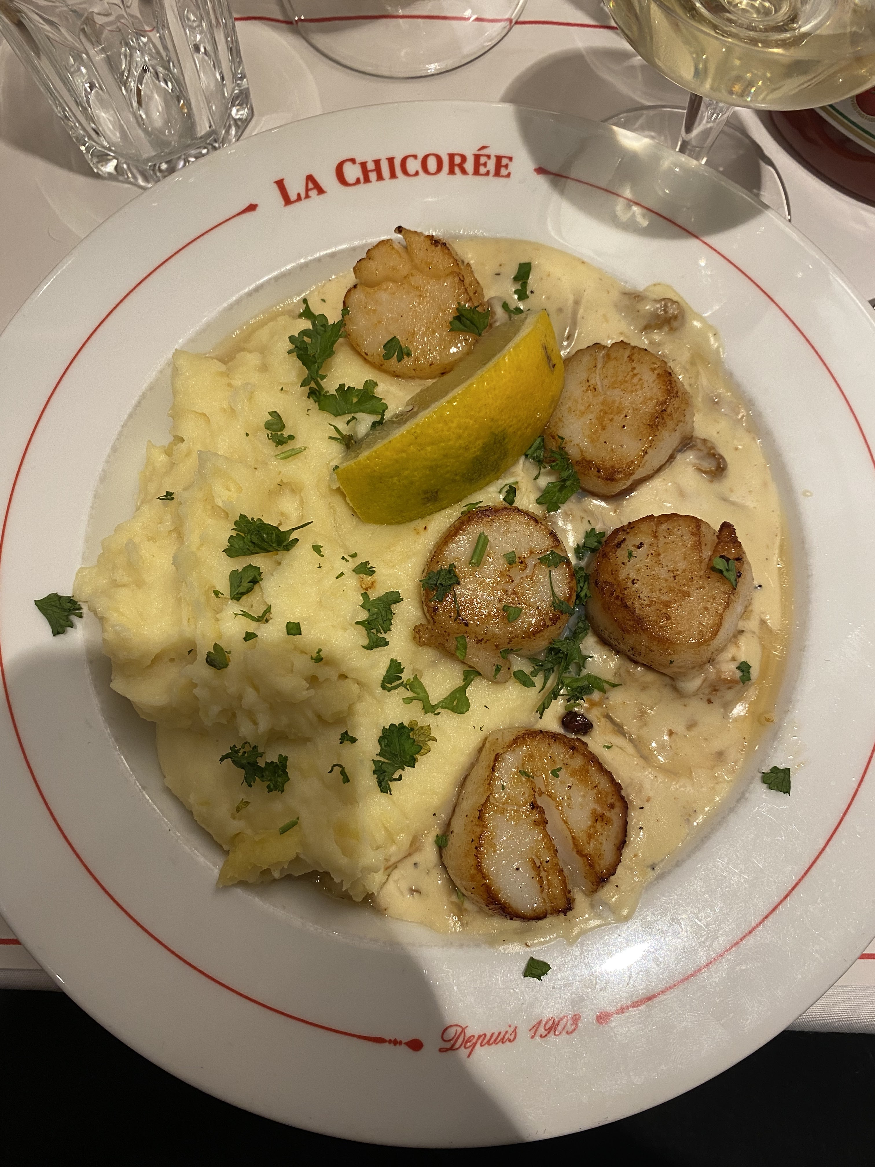 J’étais de passage à Lille et j’ai voulu essayer le fameux restaurant La Chicorée. Aucune déception malgré certains avis réticents, un service IMPECCABLE avec un personnel à l’écoute et disponible à tous moments. Venu initialement pour un verre, je suis finalement resté pour dîner. Un peu inquiet du manque de table pour pouvoir dîner, que fut ma surprise lorsque le serveur m’a guidé à l’étage et que j’ai découvert la grandeur du lieu. La brasserie est charmante et regorge d’histoires qui se retranscrivent dans sa décoration. En ce qui concerne LA NOURRITURE, j’ai pris un menu Entree+Plat+Dessert or je n’ai même pas pu manger le dessert (1ere fois que cela m’arrive) les portions sont TRÈS généreuses et délicieuses! Je recommande ce restaurant qui propose un rapport qualité/prix de haut niveau !