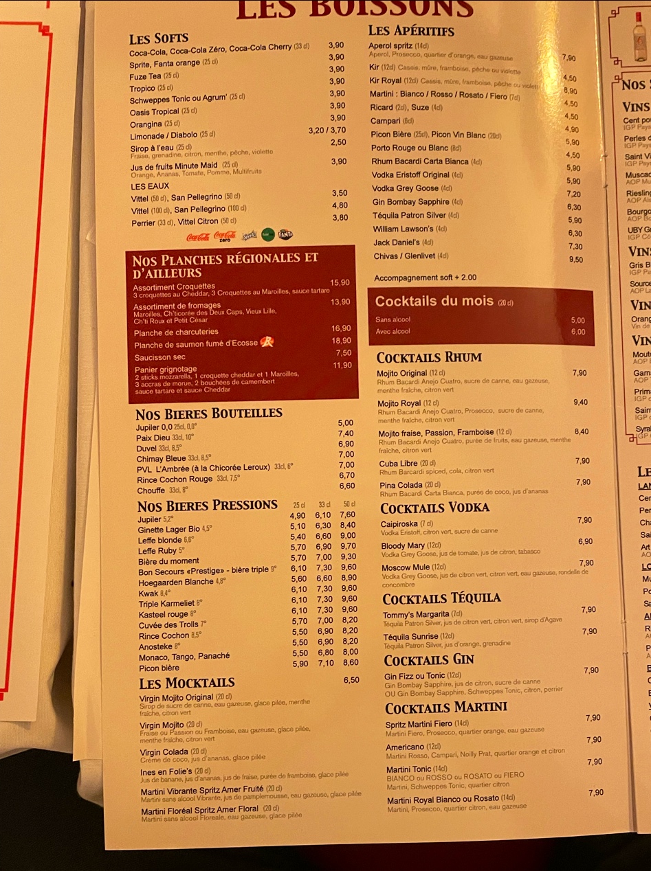 Nous sommes arrivés assez tard sur Lille et nous avons étés ravis de trouver ce restaurant Lillois d’ouvert, les portions sont généreuses et la carte propose de nombreux plats typique, c’était bon !
