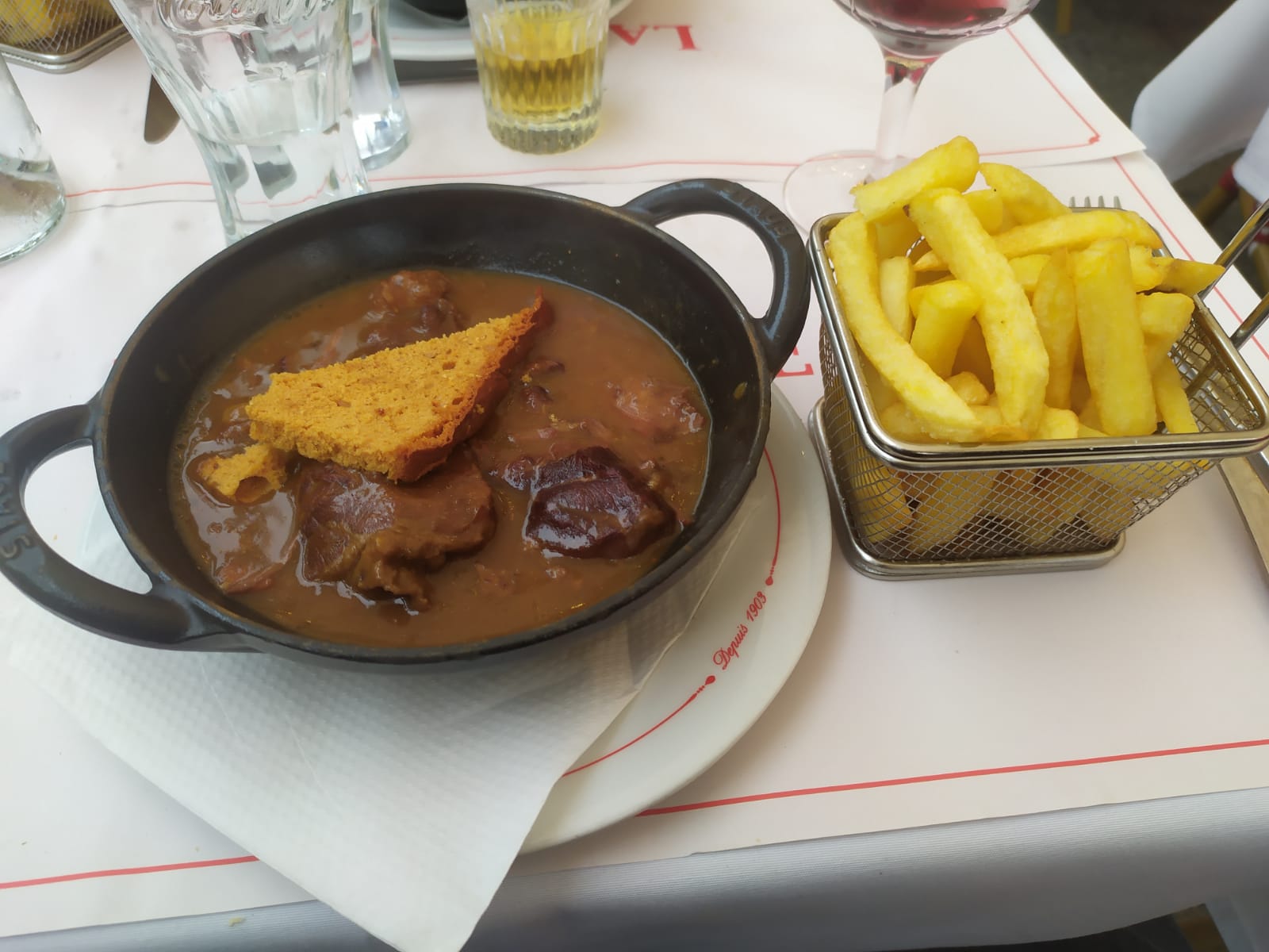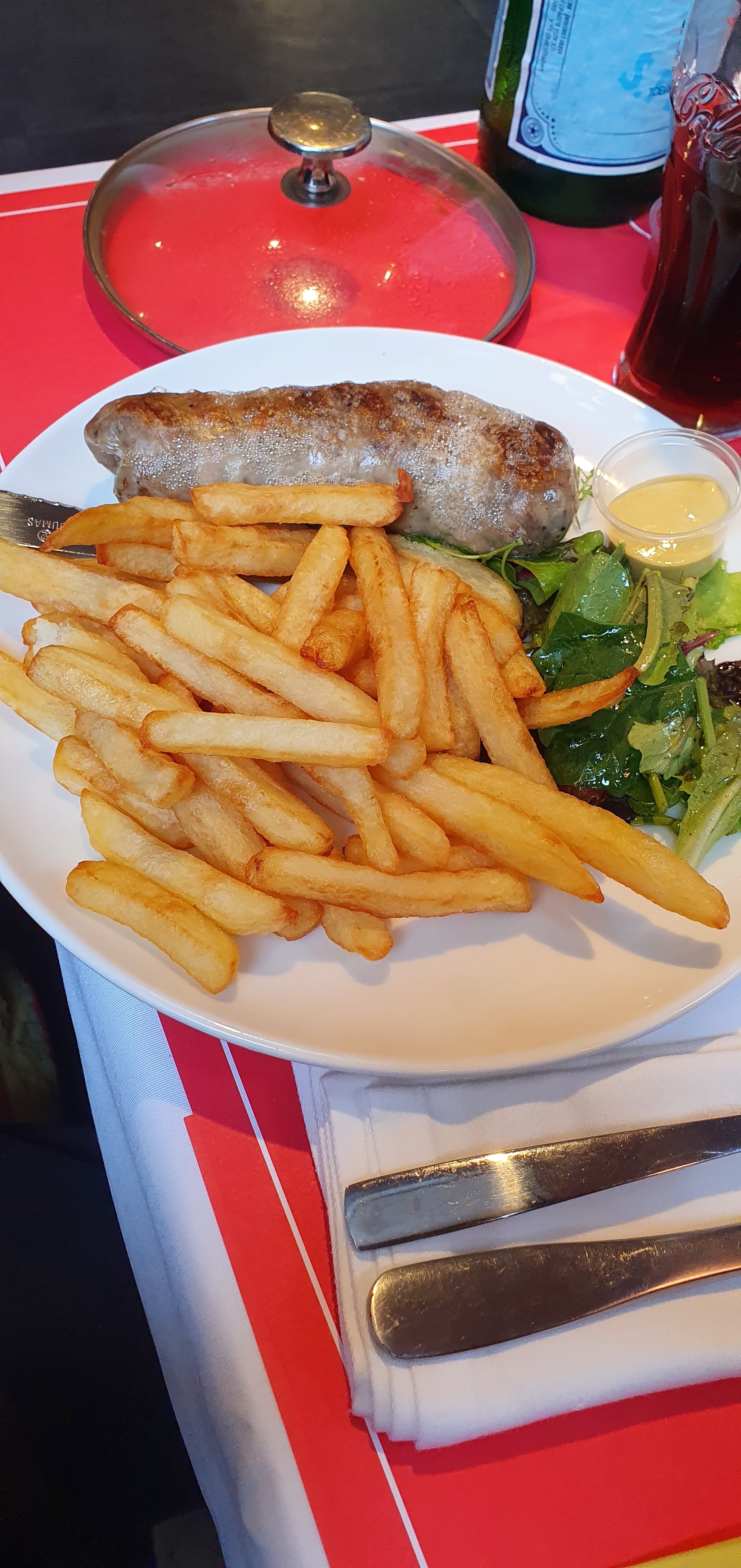 Service rapide, une bavette excellente et des frites fraîches. Quoi demander de plus pour un repas ? Petit bémol pour les profiteroles… j’aurais préféré une glace moins crémeuse, mais elles étaient très bonnes et faites maison ! Je ne peux que vous recommander cette adresse, apparament mythique à Lille 😍